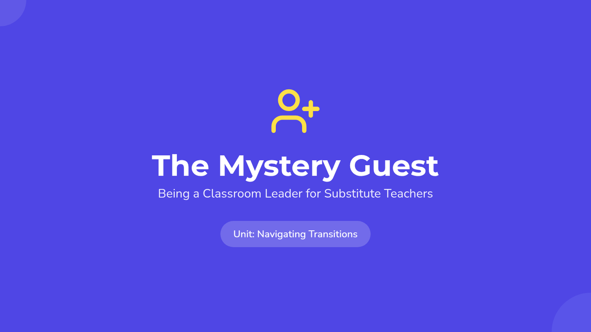 Visual presentation helping 1st graders understand the role of substitute teachers and how to be helpful leaders during a teacher's absence.