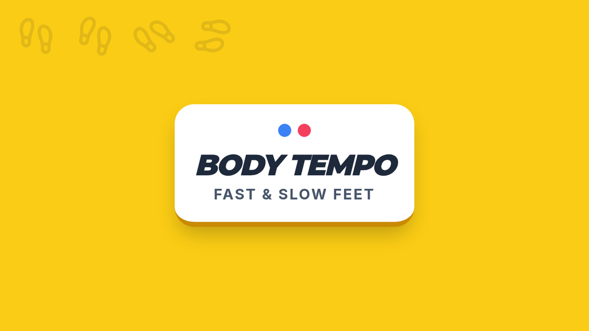 Visual slides for Lesson 3 focusing on physical regulation between walking and running feet. Includes rules for Tempo Freeze and the Slowest Master challenge.