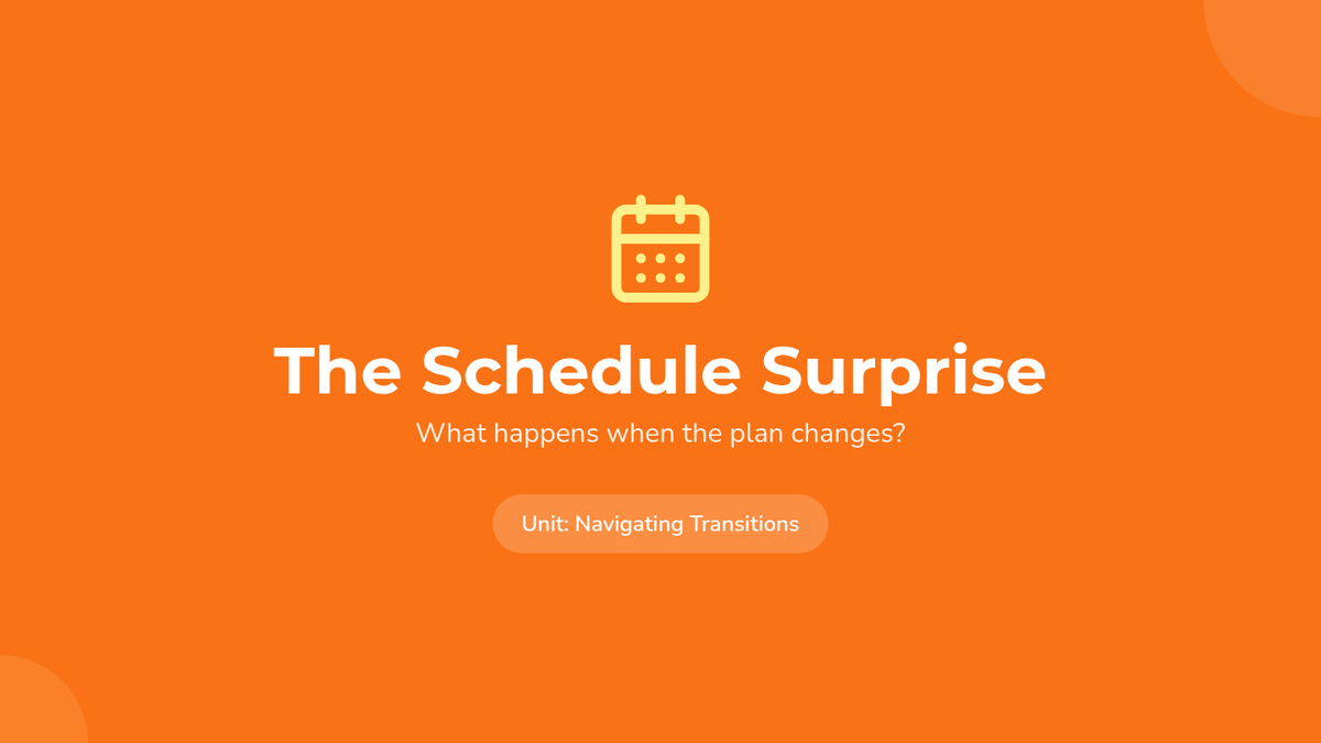 Visual presentation helping 1st graders understand the difference between expected and unexpected schedule changes, and how to use 'Plan B' thinking.