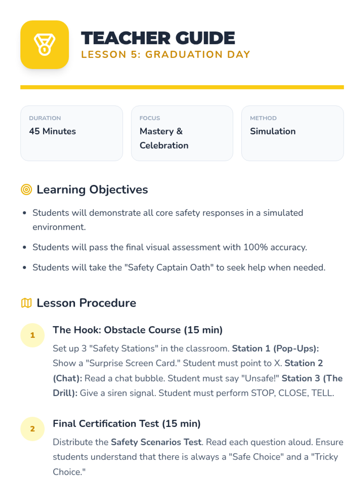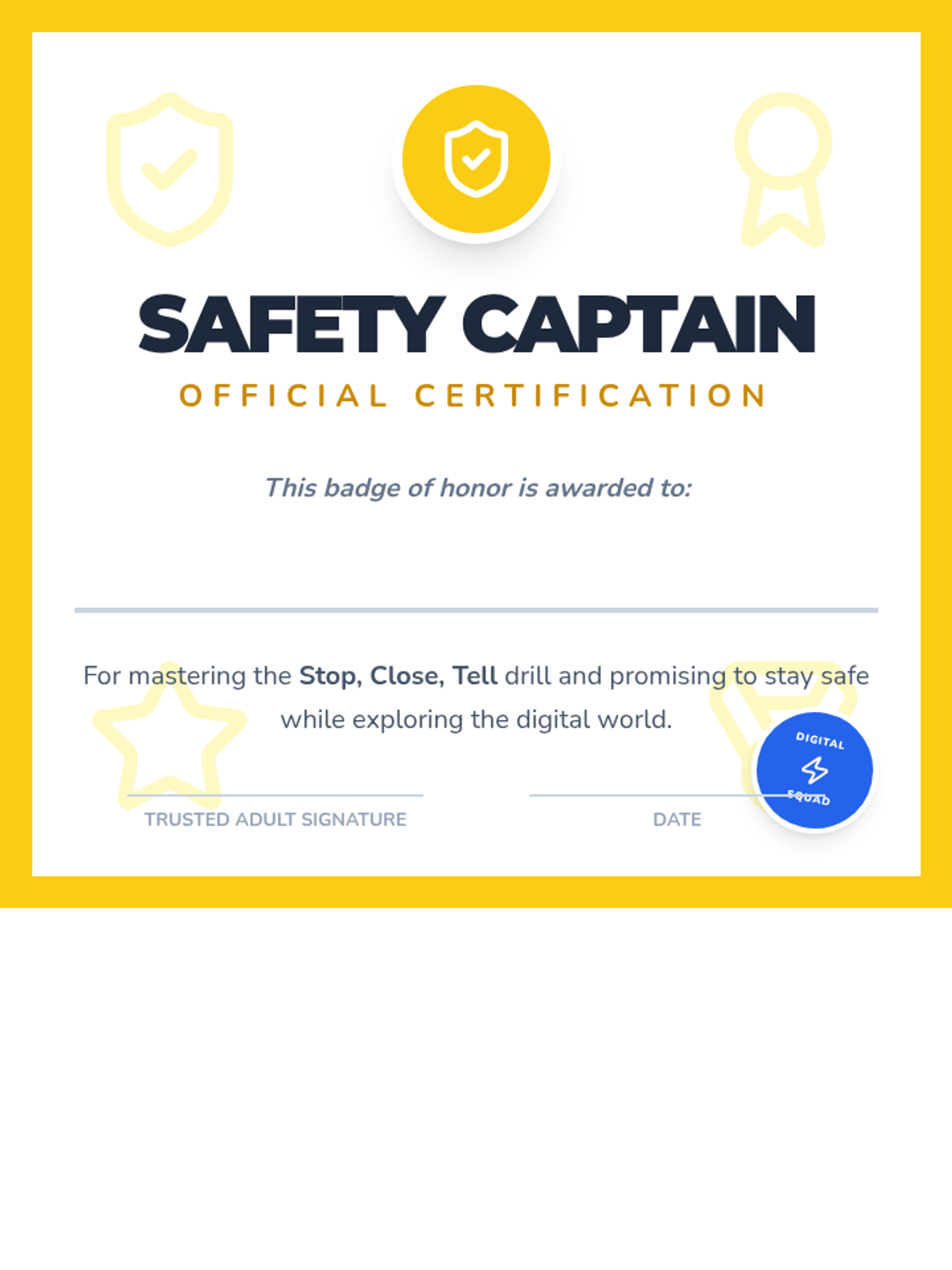Official 'Safety Captain' certificates to be awarded to students upon completion of the Digital Safety Squad sequence.