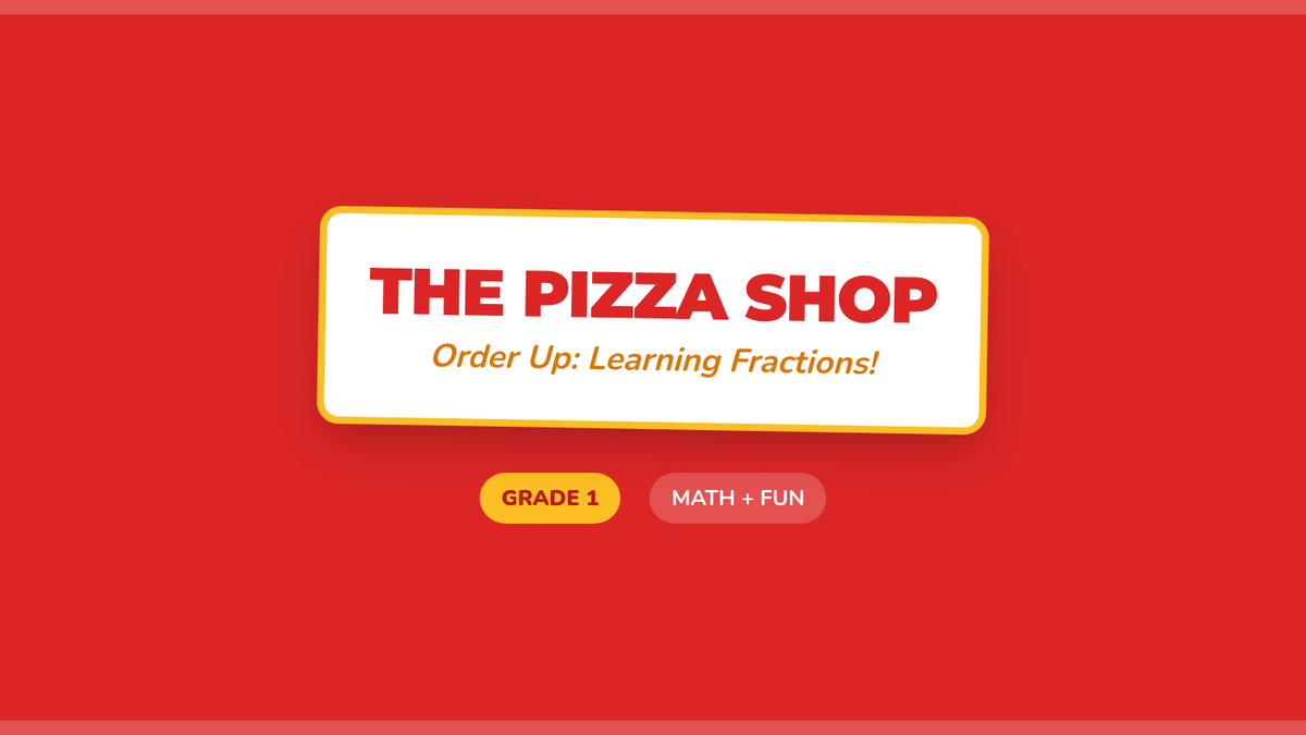 Engaging slide deck for teaching fractions to 1st graders, featuring a pizza shop theme, embedded YouTube video, and clear visual definitions of halves and fourths.