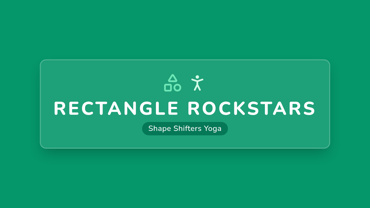 A vibrant, high-contrast presentation for the Shape Shifters Yoga lesson, including warm-up prompts, the embedded video, guided yoga poses, and a final recap of rectangle characteristics.