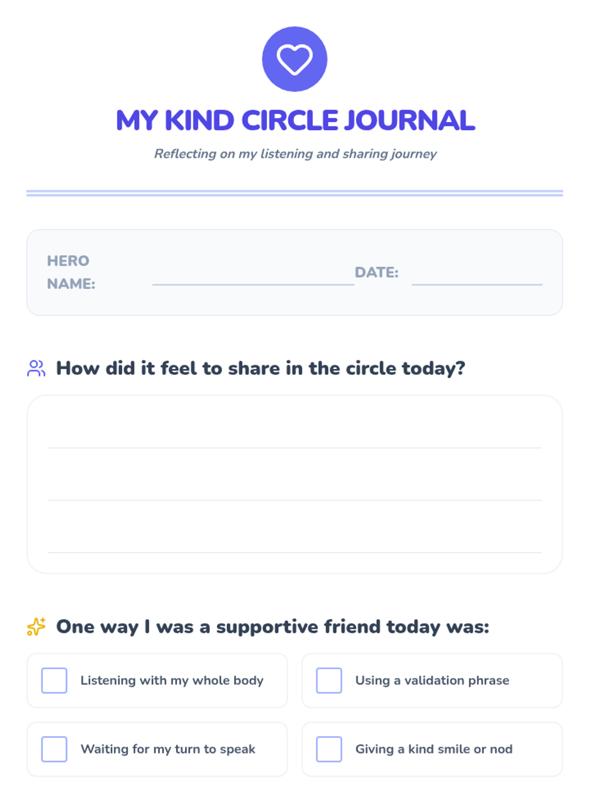 A reflection journal for students to record their feelings and experiences after participating in the community circle.