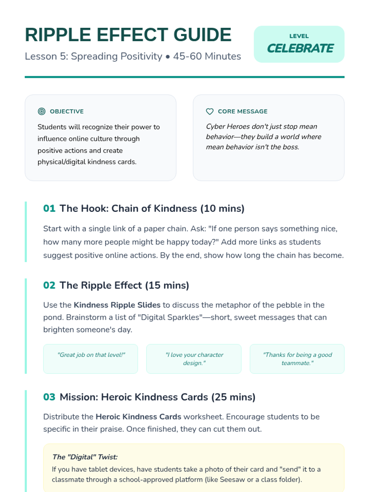 Updated 30-minute teacher guide with explicit ASCA Mindsets & Behaviors alignment for school counseling programs. Includes pacing, scripts, and differentiation tips.