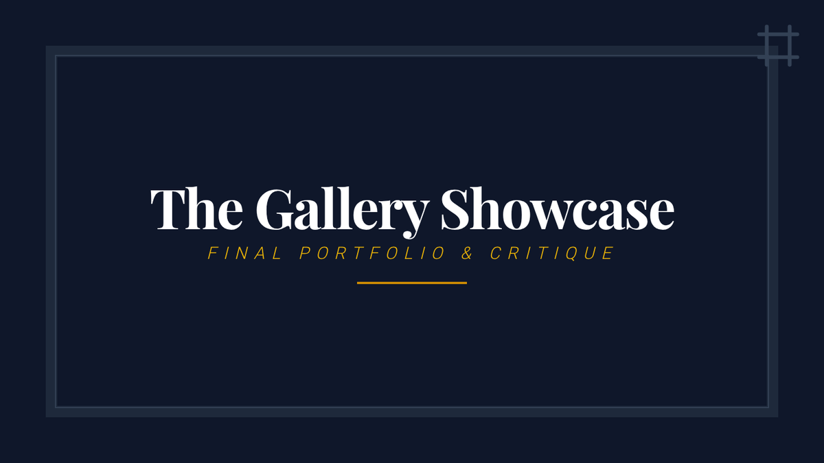 Final slide deck for the Portfolio and Critique lesson. Guides students through the curation process and the TAG feedback model using a sophisticated gallery theme.