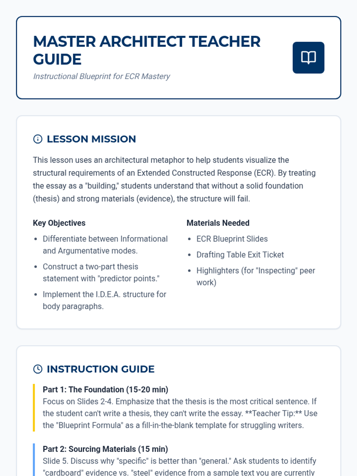 A 15-minute facilitation guide for teachers to lead a lesson on correcting run-on sentences. Includes a "breathless" hook activity, a 3-part repair strategy kit, and troubleshooting tips.
