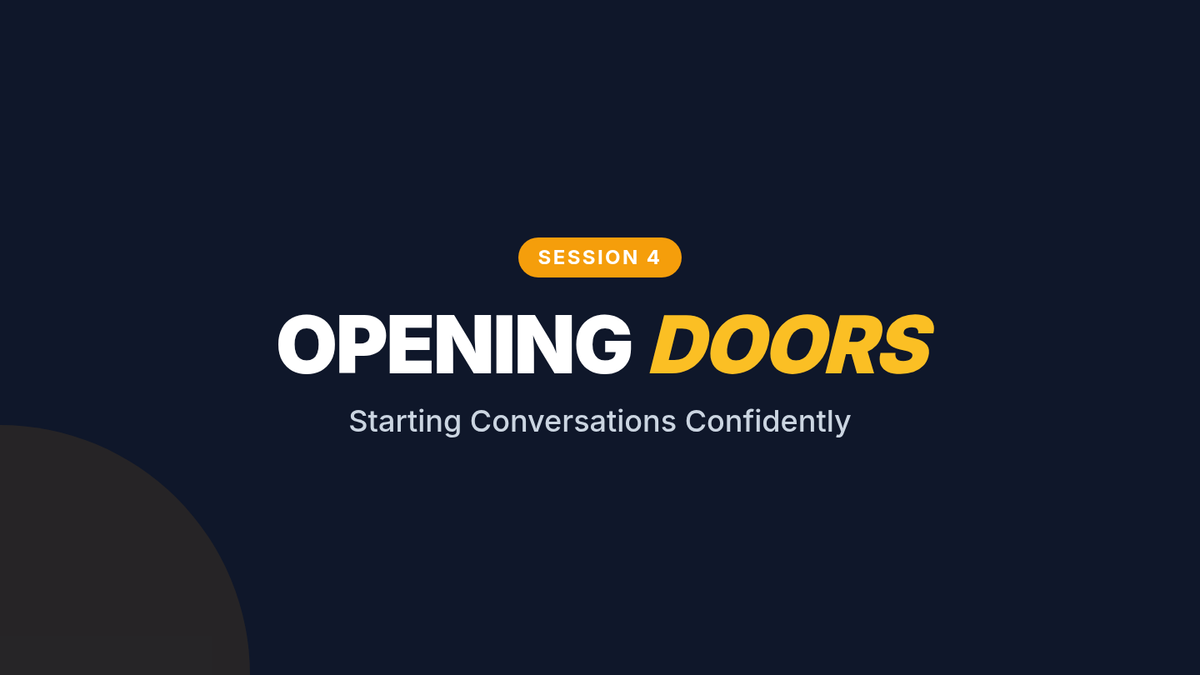 Visual presentation for Session 4, covering active listening skills, role-play instructions, and follow-up question practice.