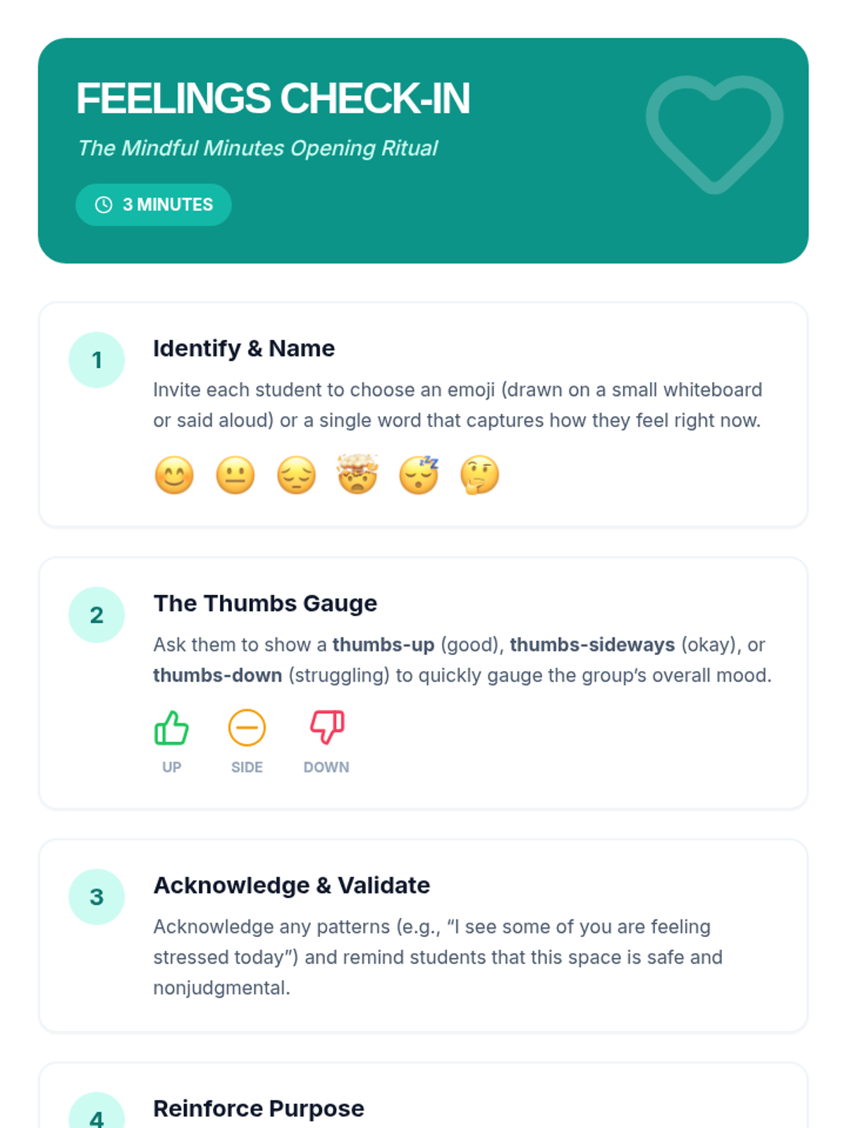 A guide for a quick, 3-minute warm-up activity where students identify and share their current emotional state using emojis and simple hand signals.