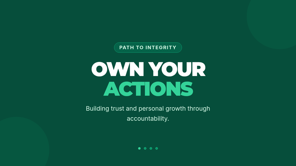 A 6-slide visual presentation featuring real-life scenarios to facilitate group discussions on personal responsibility, trust-building, and accountability.