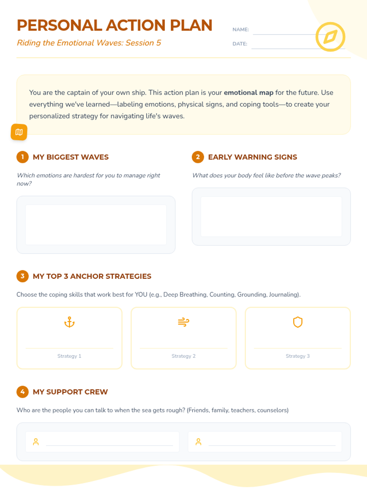 The final personal coping plan document for students, allowing them to synthesize their learning from all four sessions into a single "blueprint" for future use.