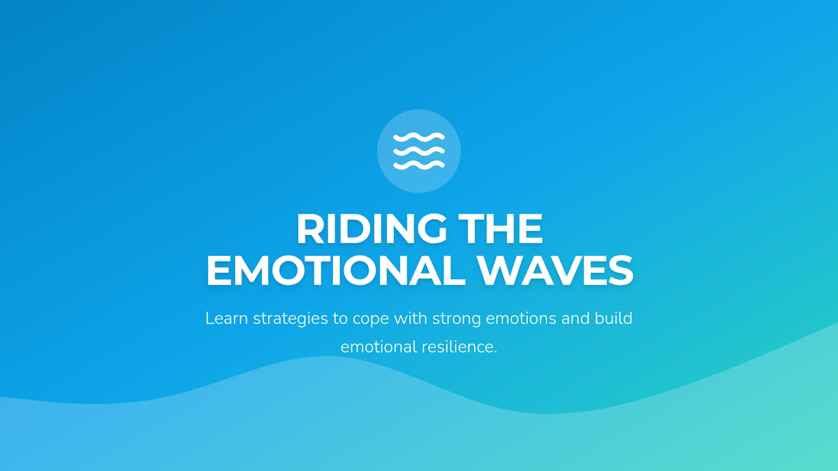 A visual presentation for the 5-session 'Riding the Emotional Waves' unit, featuring ocean-themed metaphors and an embedded video on active listening.