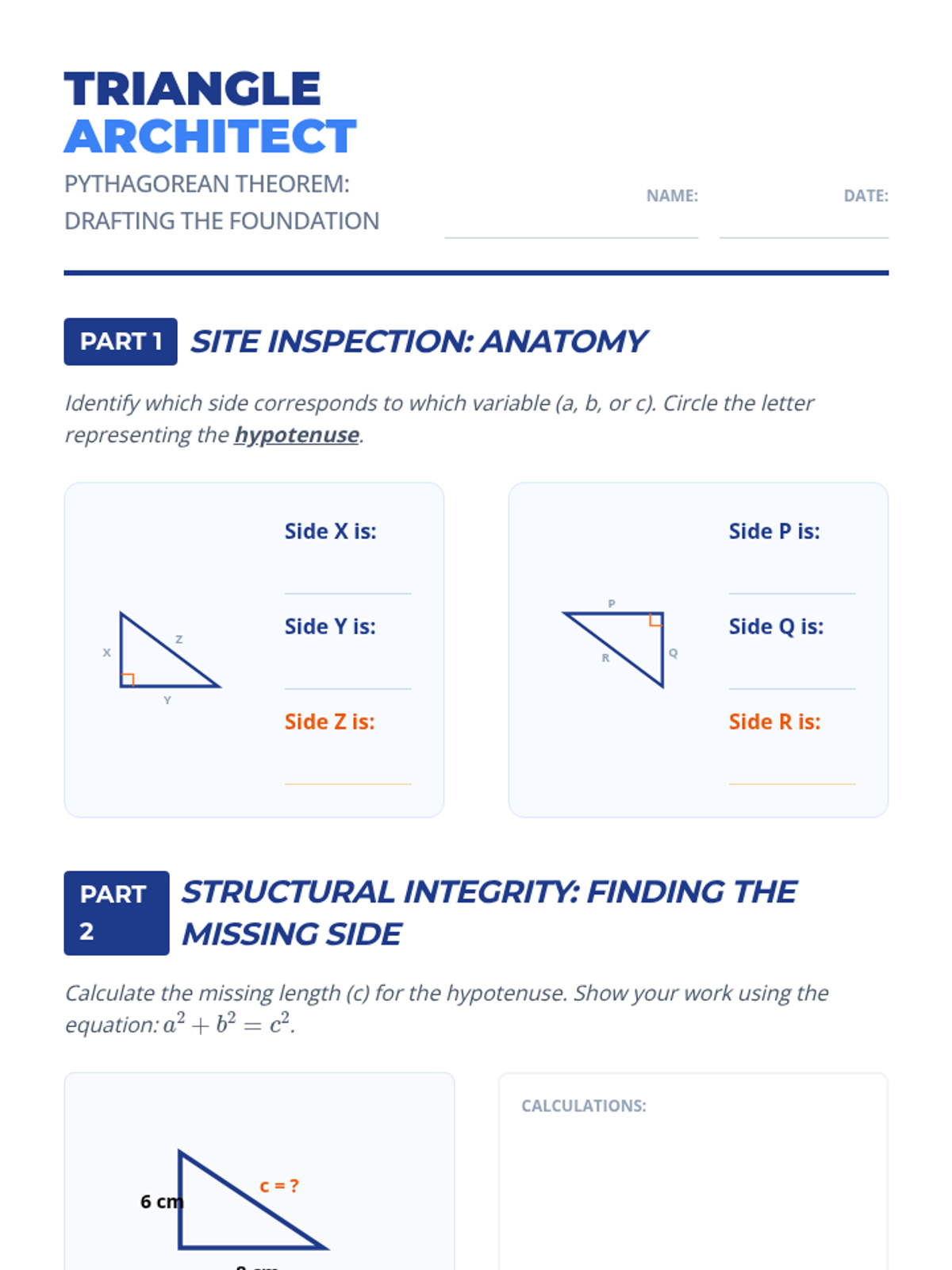 Scaffolded construction worksheet for students, guiding them through SSS, AAA, and impossible triangle builds. Includes dedicated space for tool use and reflection on triangle conditions.