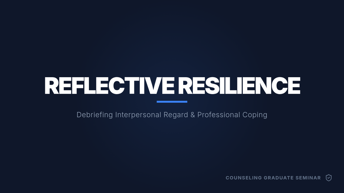 A 6-slide presentation deck designed for graduate counseling students to debrief group affirmation exercises and introduce a multi-faceted stress management matrix.