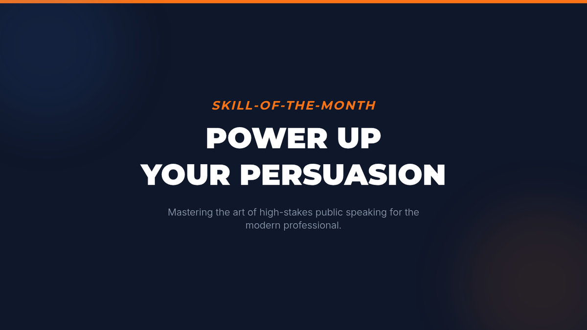 A high-impact slide presentation for college students introducing the Skill-of-the-Month initiative, featuring a case study on public speaking and persuasion.