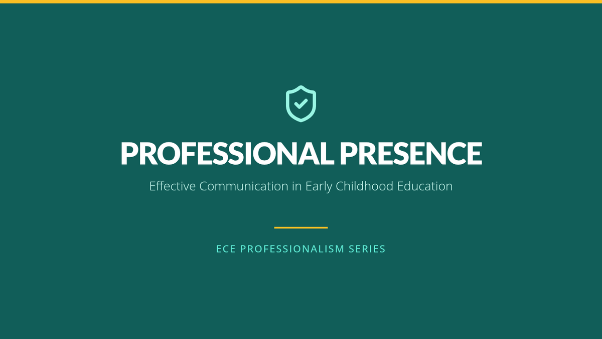 A visually engaging presentation covering the core principles of ECE professionalism, focusing on parent communication (the sandwich method), colleague collaboration, and digital etiquette.