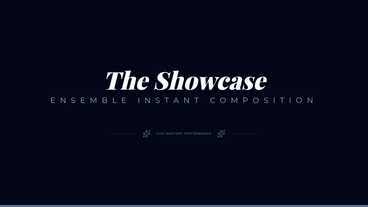 Final performance protocol slides for the Ensemble Instant Composition Showcase, detailing duration, success criteria, and prompts.