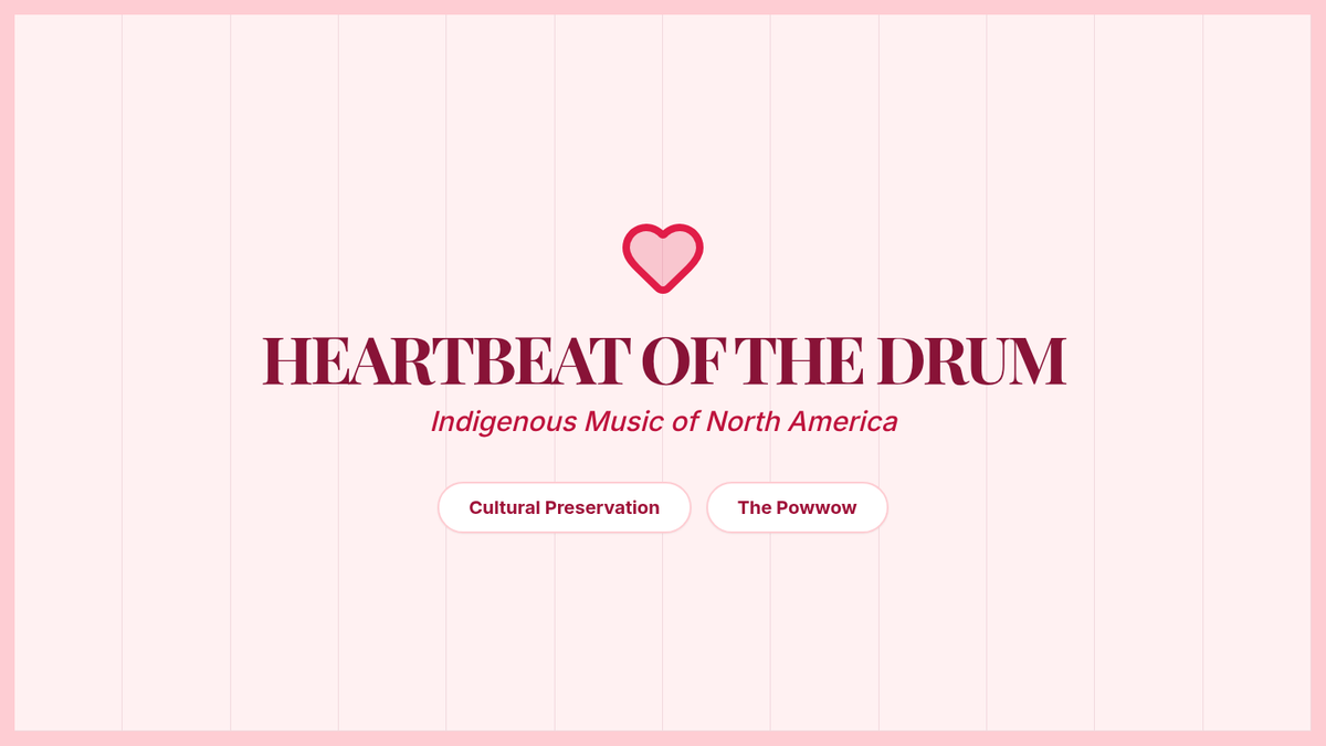 Visual presentation slides for Lesson 4, exploring the spiritual significance of the drum in Native American cultures, the tradition of the Powwow, and the Native American flute.