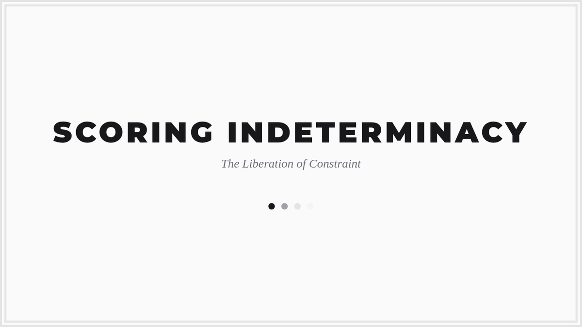 Slides for graduate dance students investigating the history and practice of indeterminate scoring, including Pioneers and Project prompts.