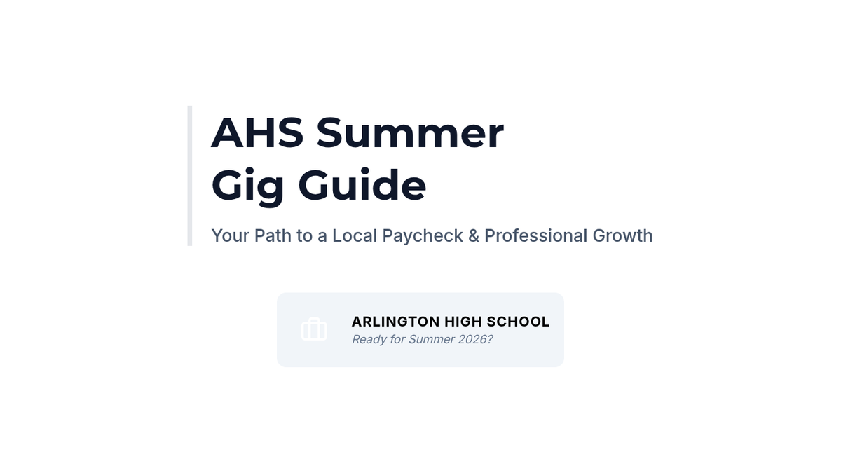 A 7-slide presentation designed for Arlington High School students to navigate the local summer job market. It covers local hiring spots, application strategies, and interview tips with a clean, school-themed aesthetic. Updated to include D'Agostino's Deli.