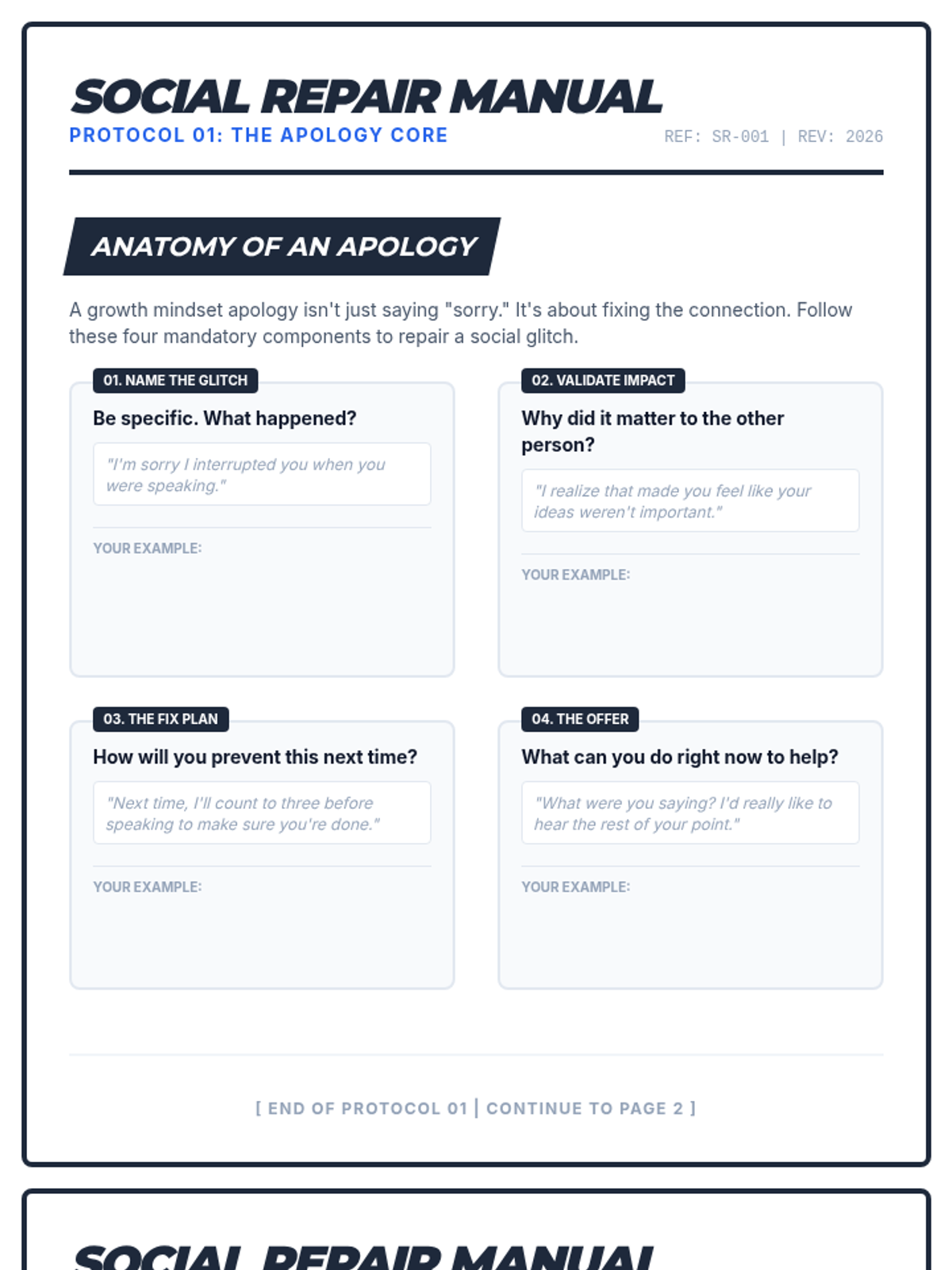 FAST Skills for Self-RespectInterpersonal effectiveness techniques for maintaining self-respect using the DBT framework of being Fair, avoiding over-Apologizing, Sticking to values, and being Truthful. Equips learners to preserve personal integrity during social interactions and conflict resolution.