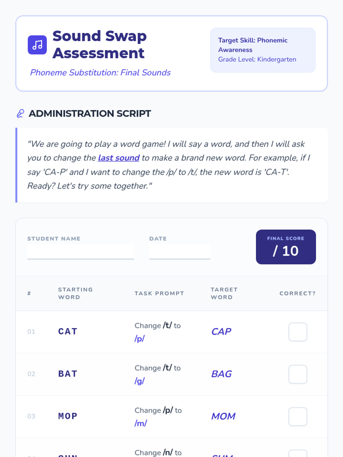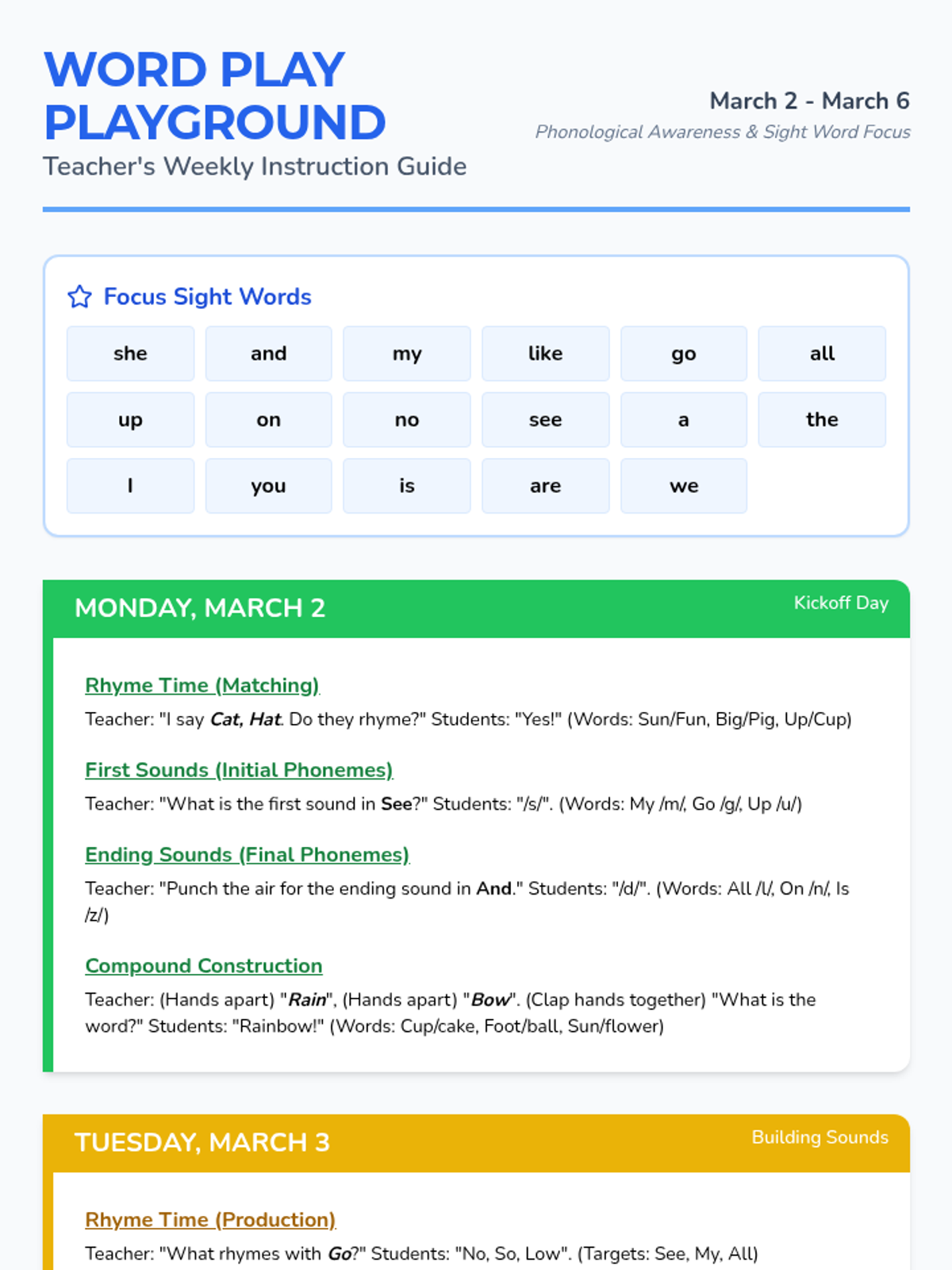 Letter identification, phonemic awareness, and decoding skills ranging from simple letter-sound associations to complex multisyllabic patterns. Develops reading fluency through systematic instruction in vowel teams, consonant blends, and word recognition strategies using decodable texts.