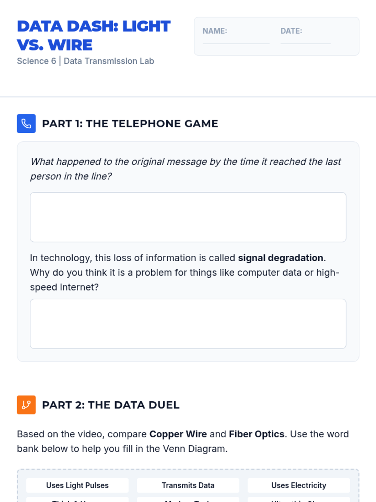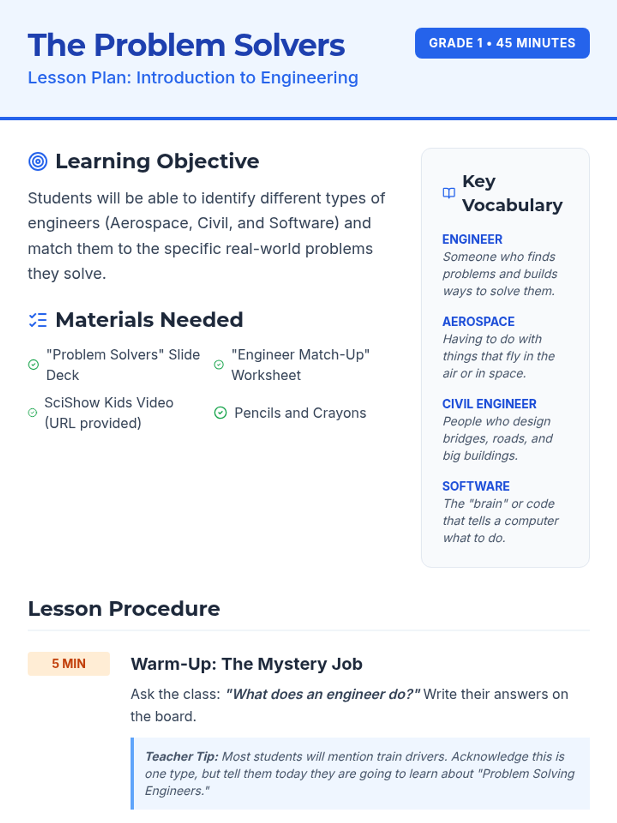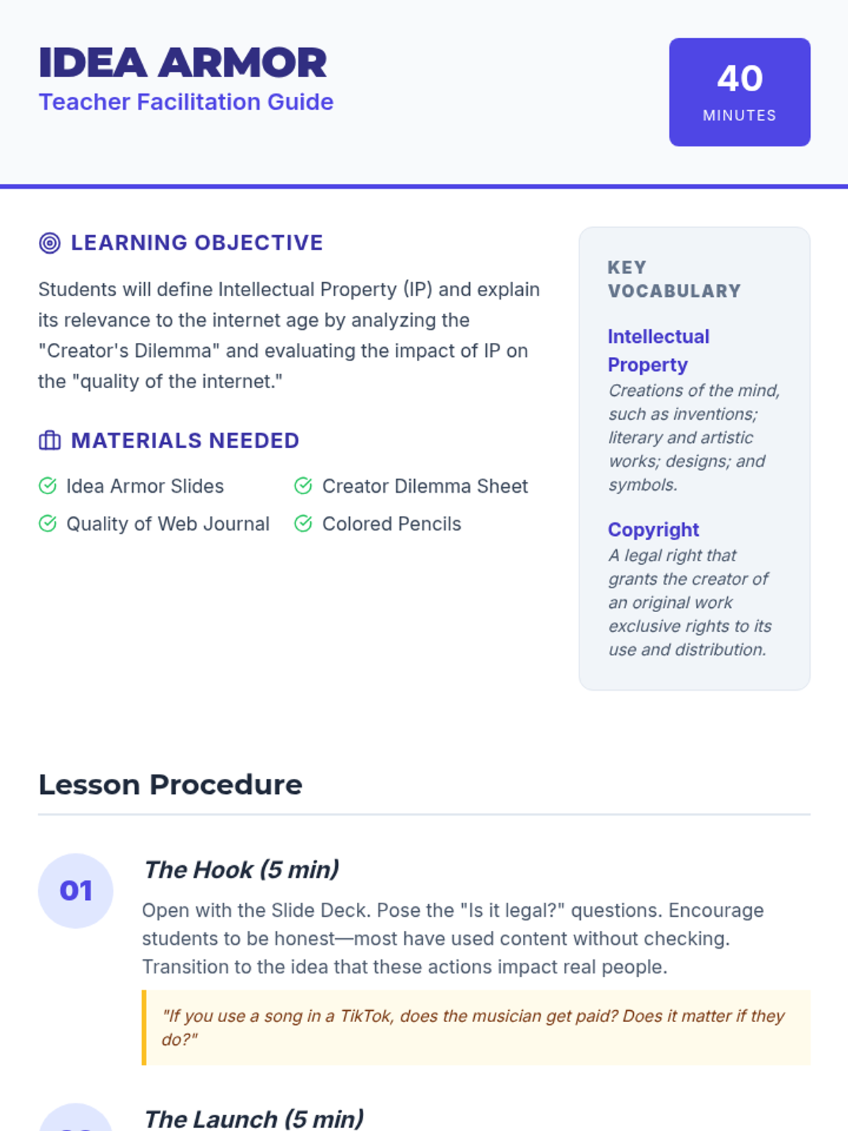 A sleek, high-energy slide deck for guiding the lesson, including the warm-up, video embed, and activity instructions.