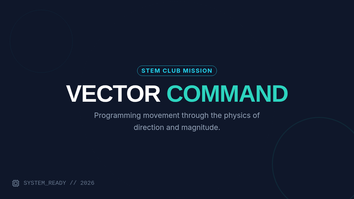 A slide deck for teaching vector concepts to middle schoolers, featuring embedded video clips, clear definitions of scalars vs. vectors, and instructions for a hands-on robotics activity.