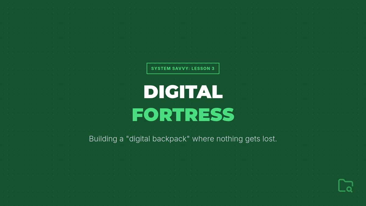 Workshop slides for Lesson 3, focusing on folder hierarchies, naming conventions, and quick digital retrieval strategies to prevent lost assignments.