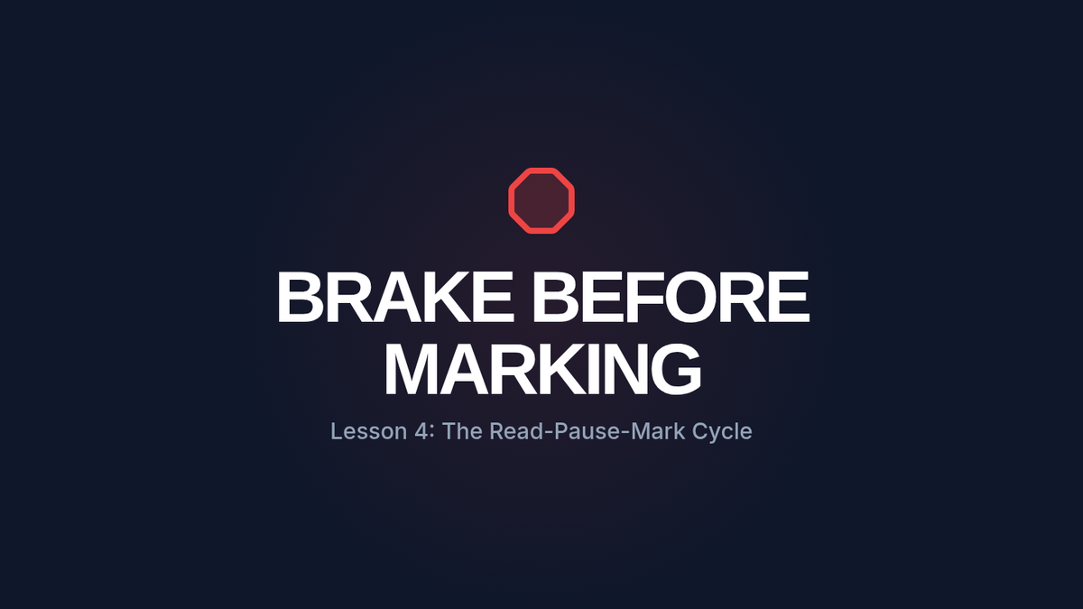 Slides for Lesson 4 teaching the 'Read, Pause, Evaluate, Mark' (RPM) cycle to improve executive function and highlighting accuracy.