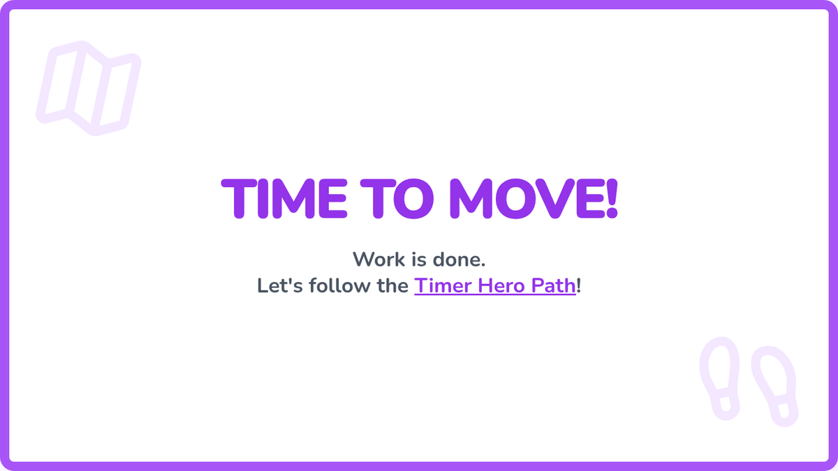 Colorful slides for Lesson 5 establishing the 'Task > Timer > Transition' loop and moving to a break zone.