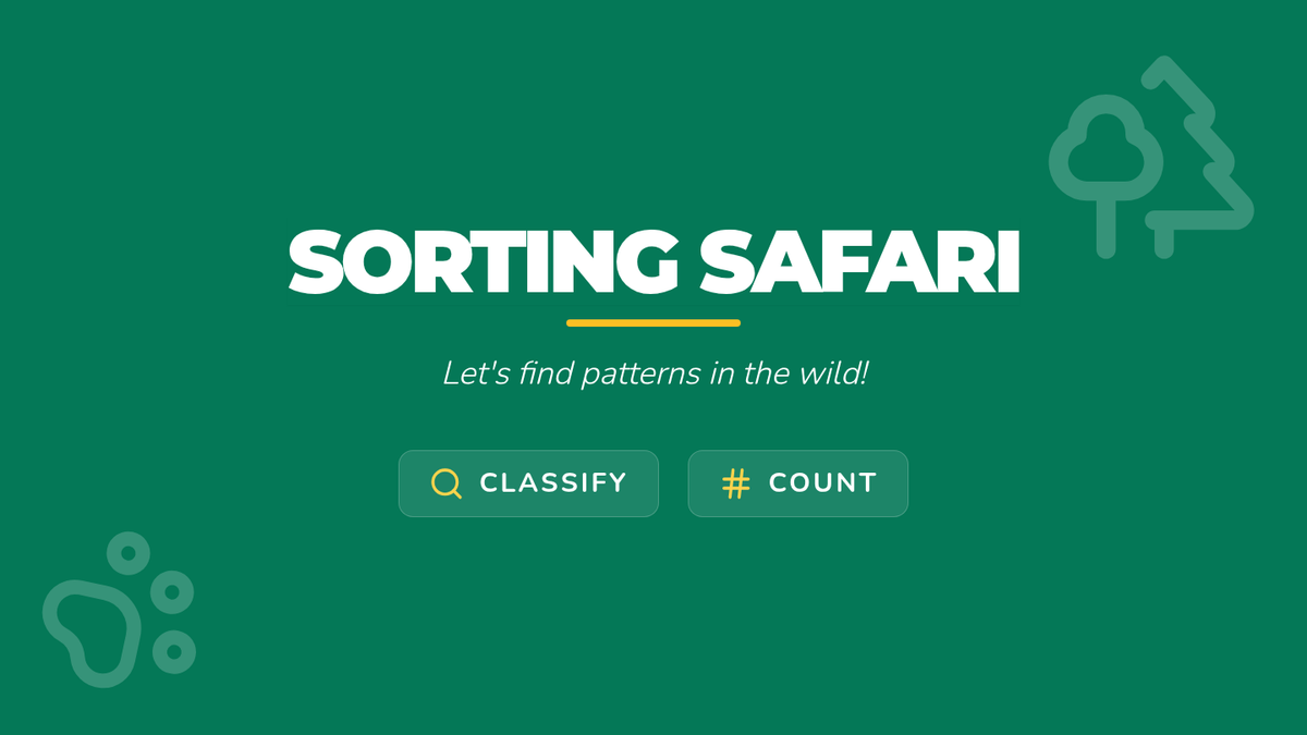 Visual slide deck for guided instruction on sorting and classifying. Features clear visual examples of sorting animals by species, size, and pattern to build flexible thinking and mathematical vocabulary.