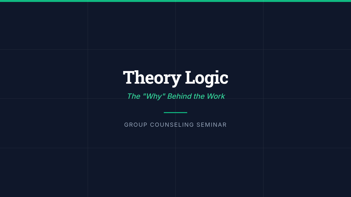 Instructional slides for a graduate counseling seminar covering group exercises, focus, and the depth chart. Features a professional aesthetic with clear visual representations of core counseling concepts. Updated with detailed slides on holding, shifting, and deepening focus.
