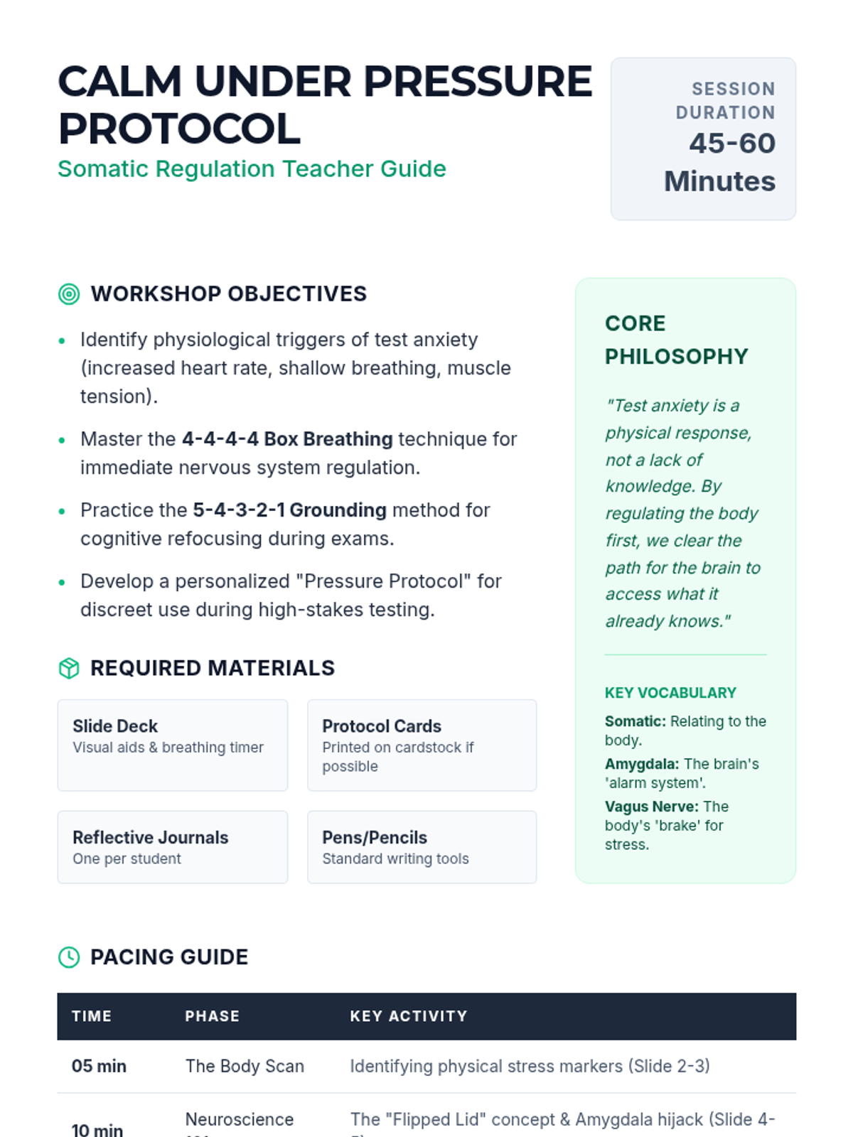 A comprehensive teacher facilitation guide for the Circuit Breaker lesson. It includes pedagogical philosophy for alternative education, slide-by-slide facilitation notes, the EAR method framework, and guidance for managing high-stakes peer conflict scenarios.