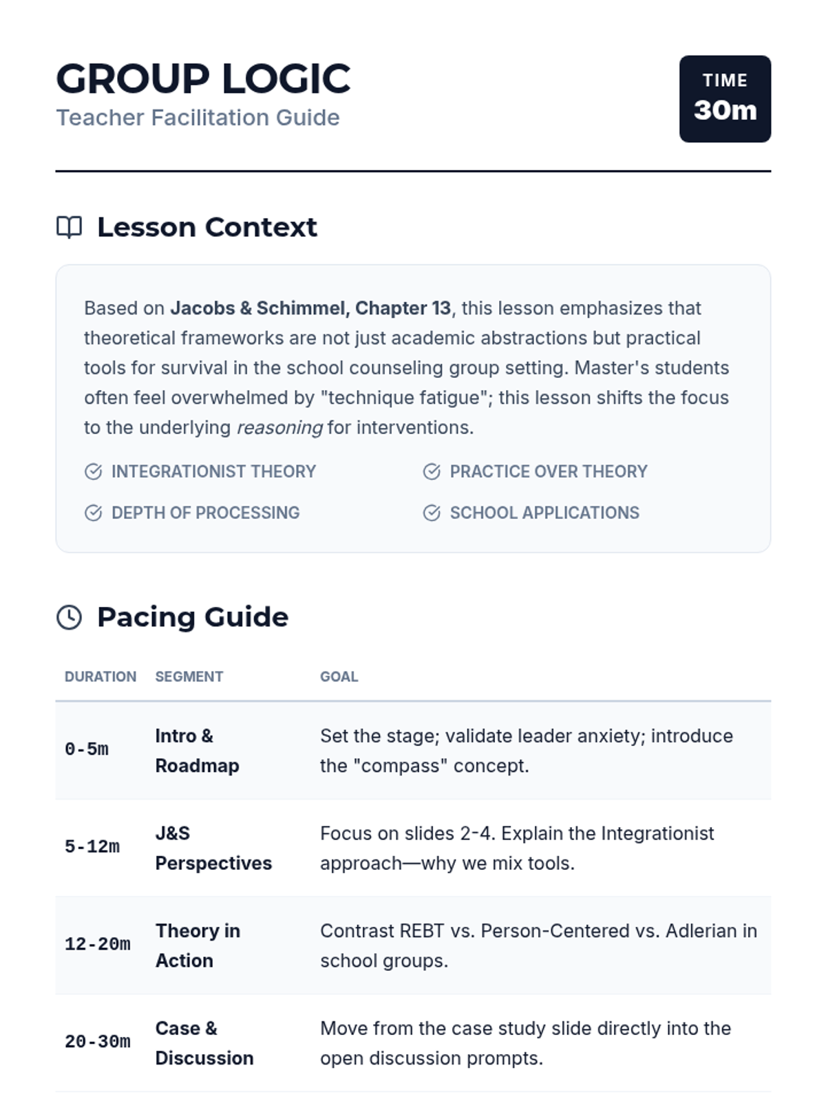 A comprehensive teacher facilitation guide for the Logic Lab CBT lesson. Includes pacing, video teaching moments, discussion prompts for the Exposure/Extinction extension, and answer keys for student materials.