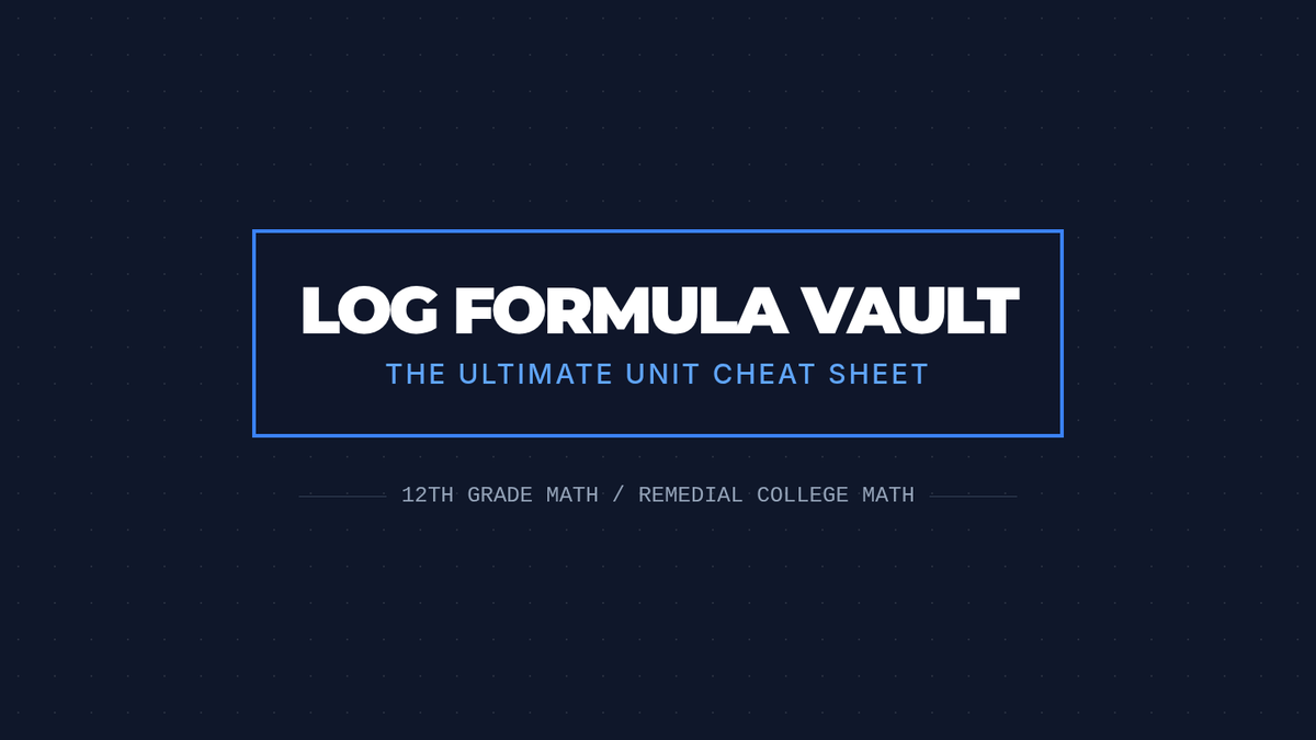 A comprehensive reference sheet for teachers and students listing the 8 core logarithmic formulas with formal notation and concise explanations. Used as a master key for peer review.