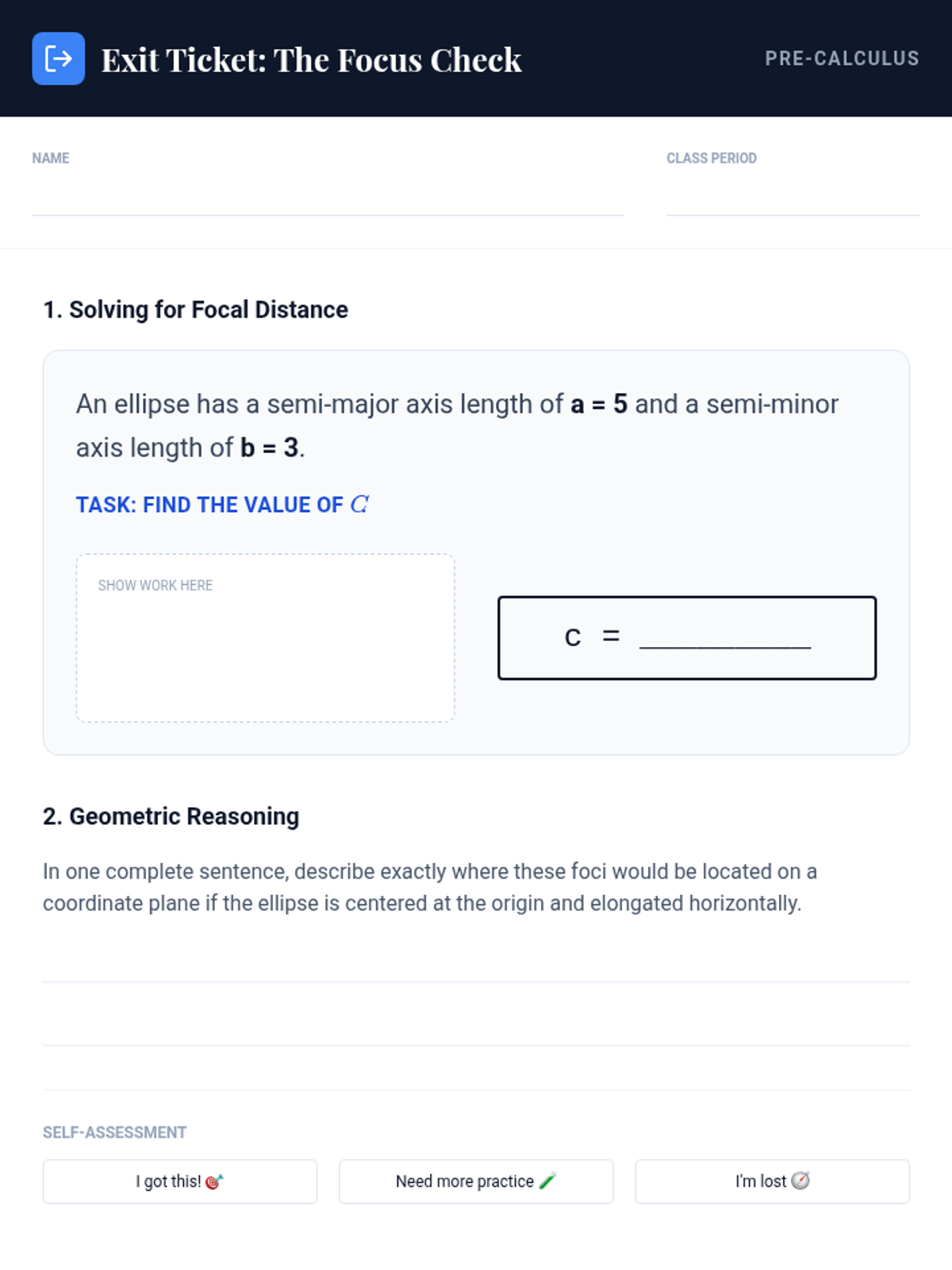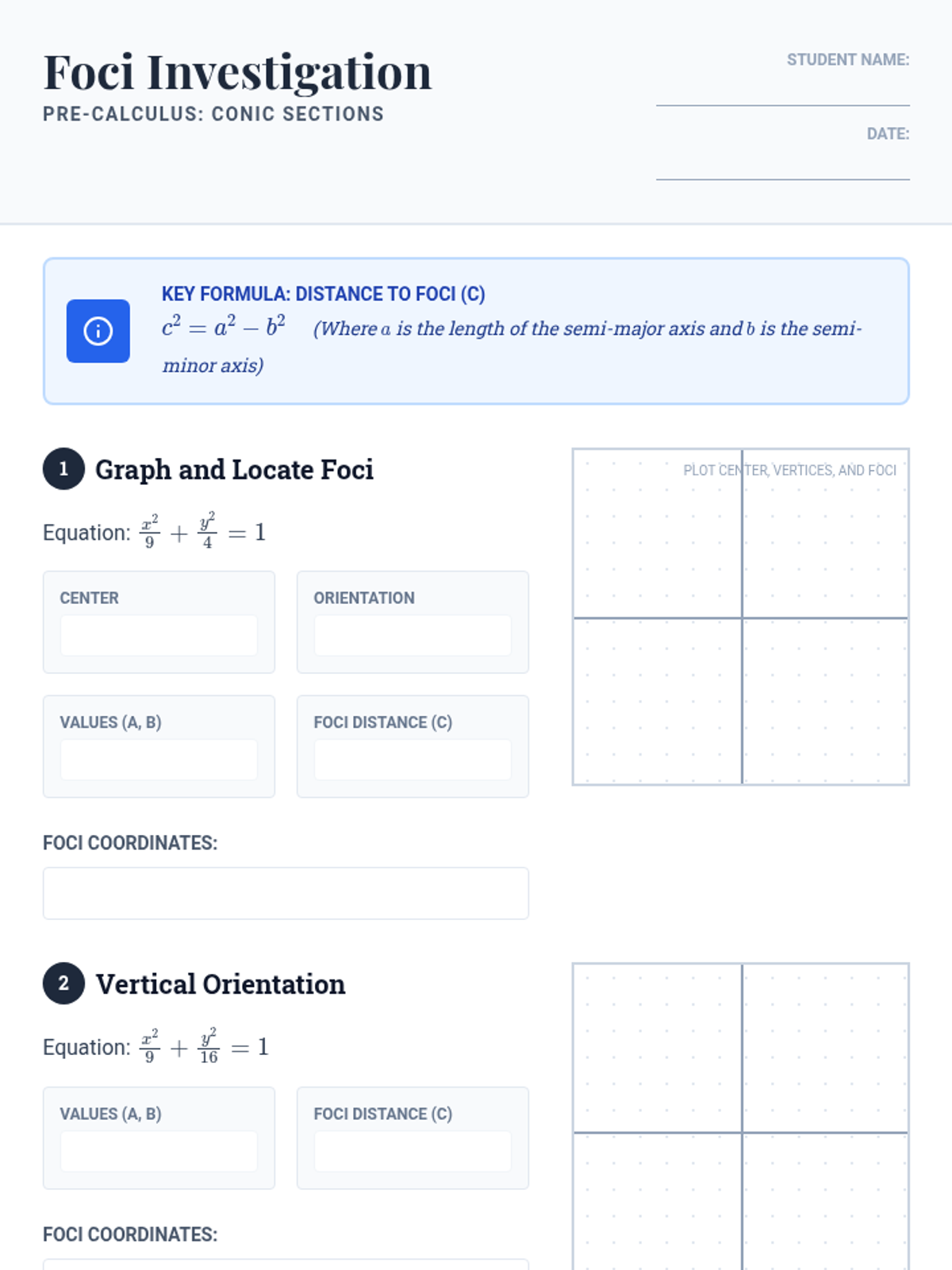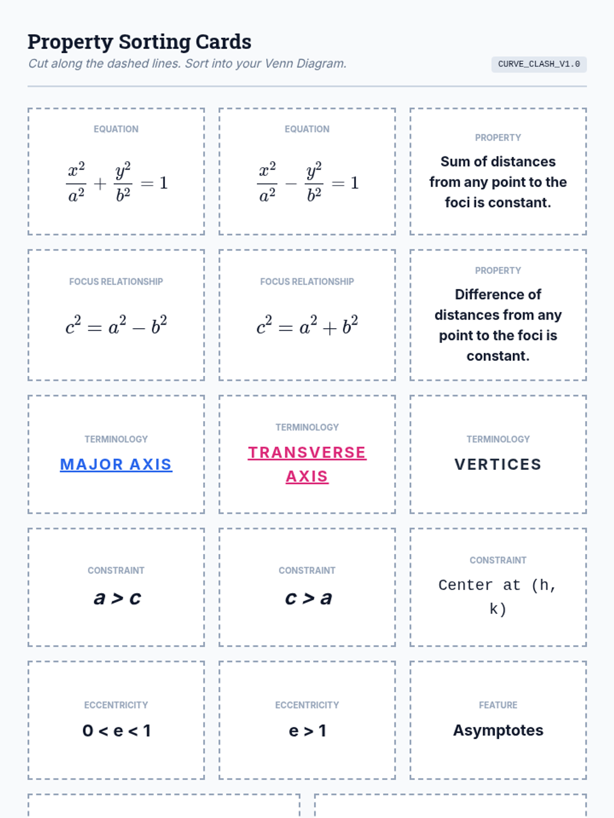 A rapid identification worksheet for classifying rotated conic sections using the discriminant B^2 - 4AC.