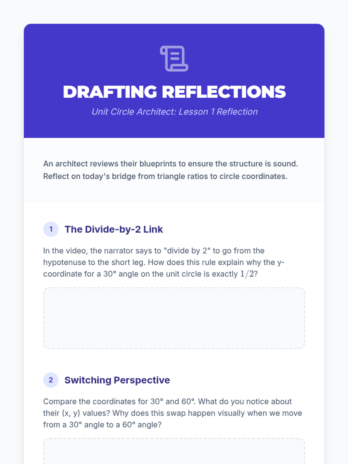 A visual presentation for instruction, discussion, and guided activity instructions for the Human Unit Circle lesson.