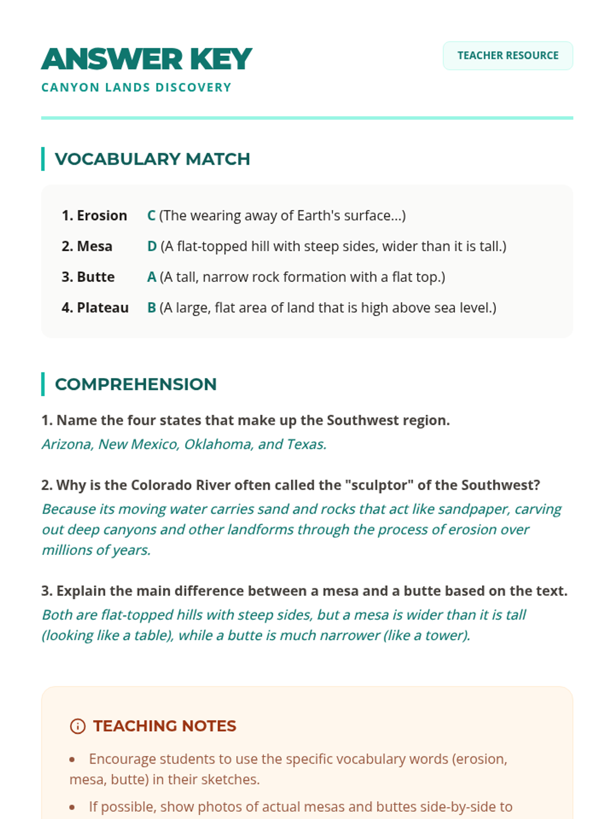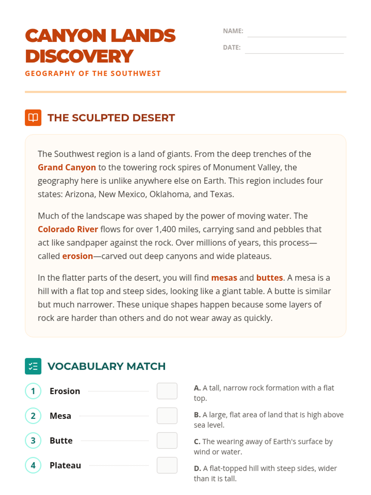 A comprehensive 5-lesson unit exploring the unique geography, climate, natural resources, diverse cultures, and political boundaries of the Southwest region of the United States.