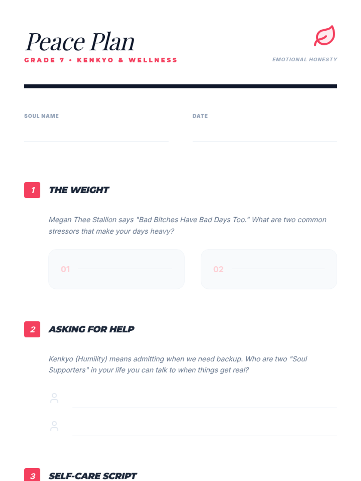 A series of lessons designed to develop social-emotional health, focusing on interpersonal kindness and personal coping strategies for elementary students.