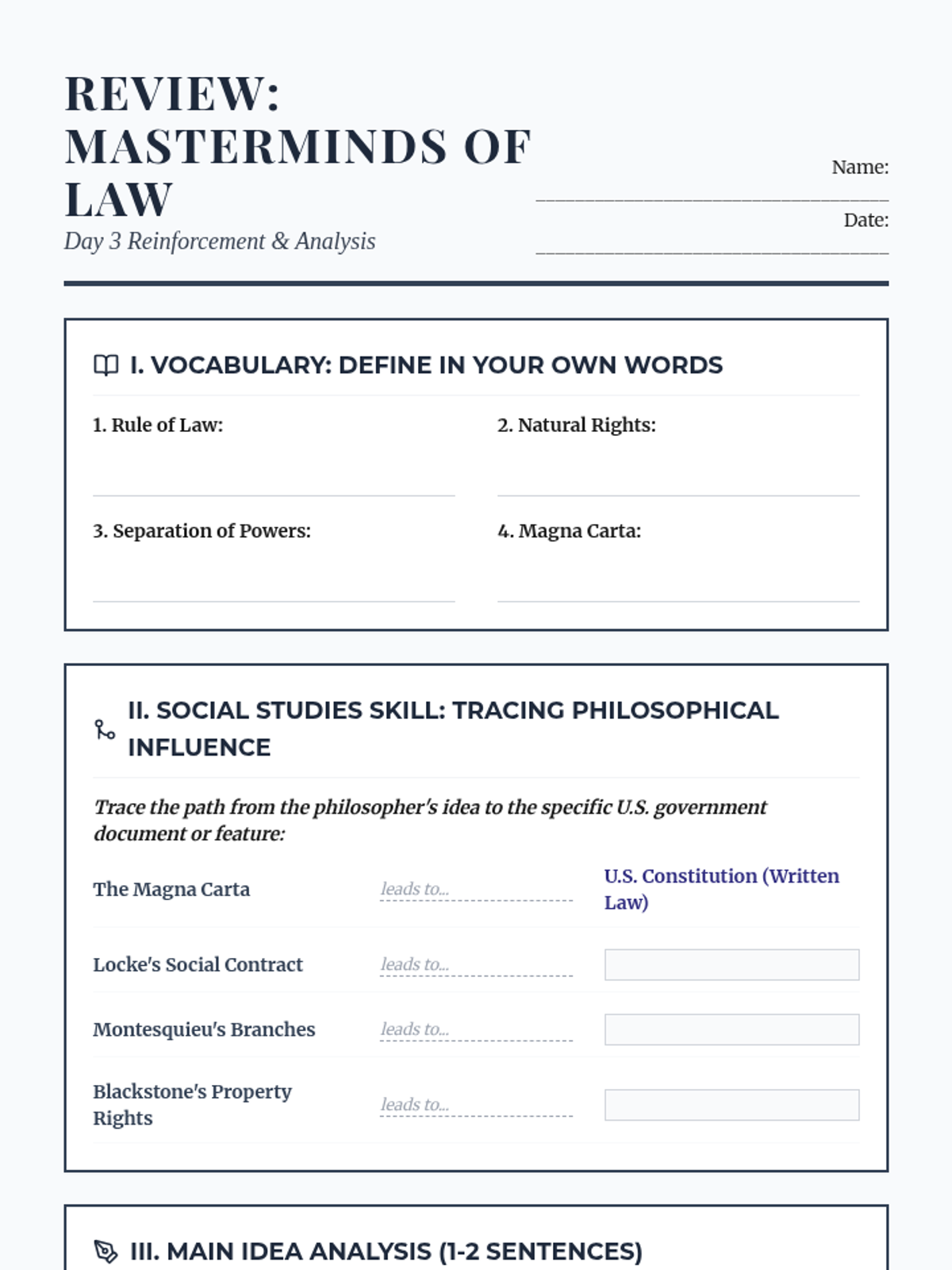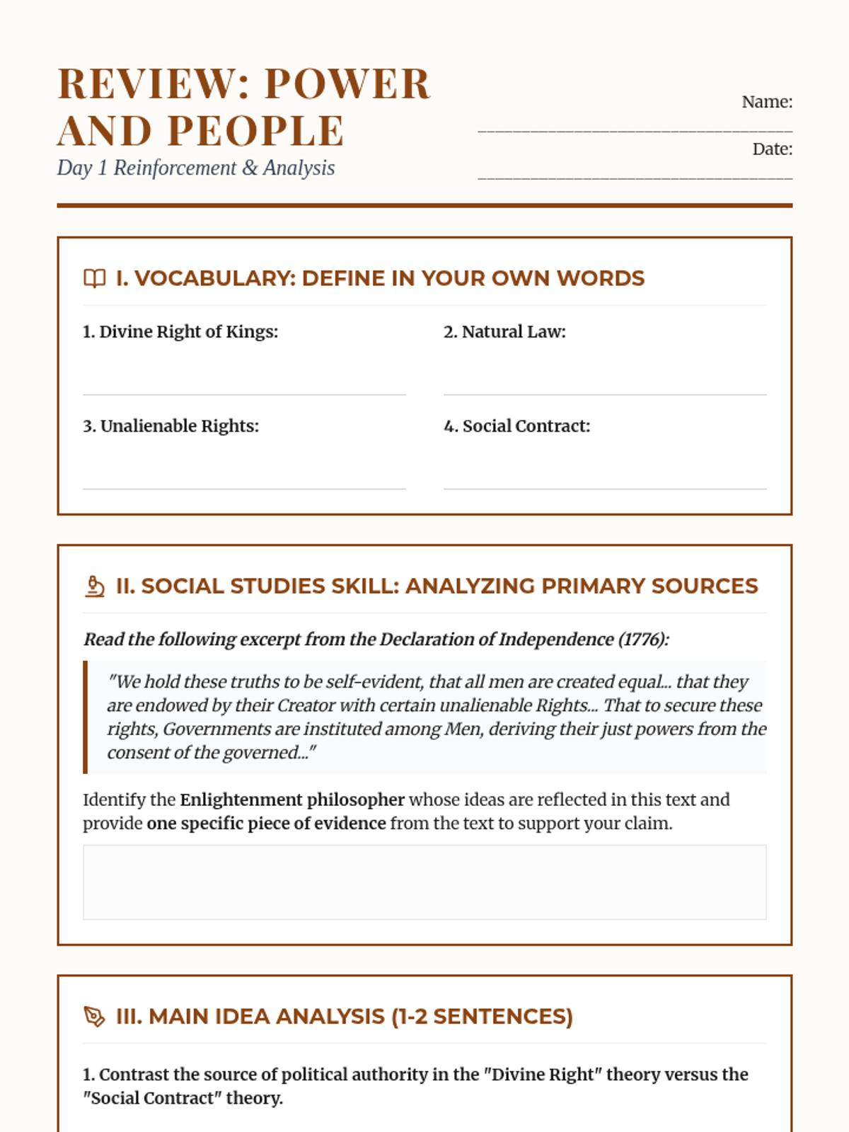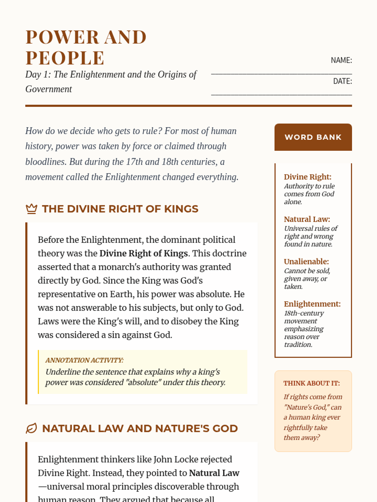 A 7-day comprehensive remediation sequence focused on the philosophical, historical, and individual foundations of American government. Designed for students needing mastery of TEKS 1 and 12B, the unit features structured readers, skill-building worksheets, and a cumulative assessment.
