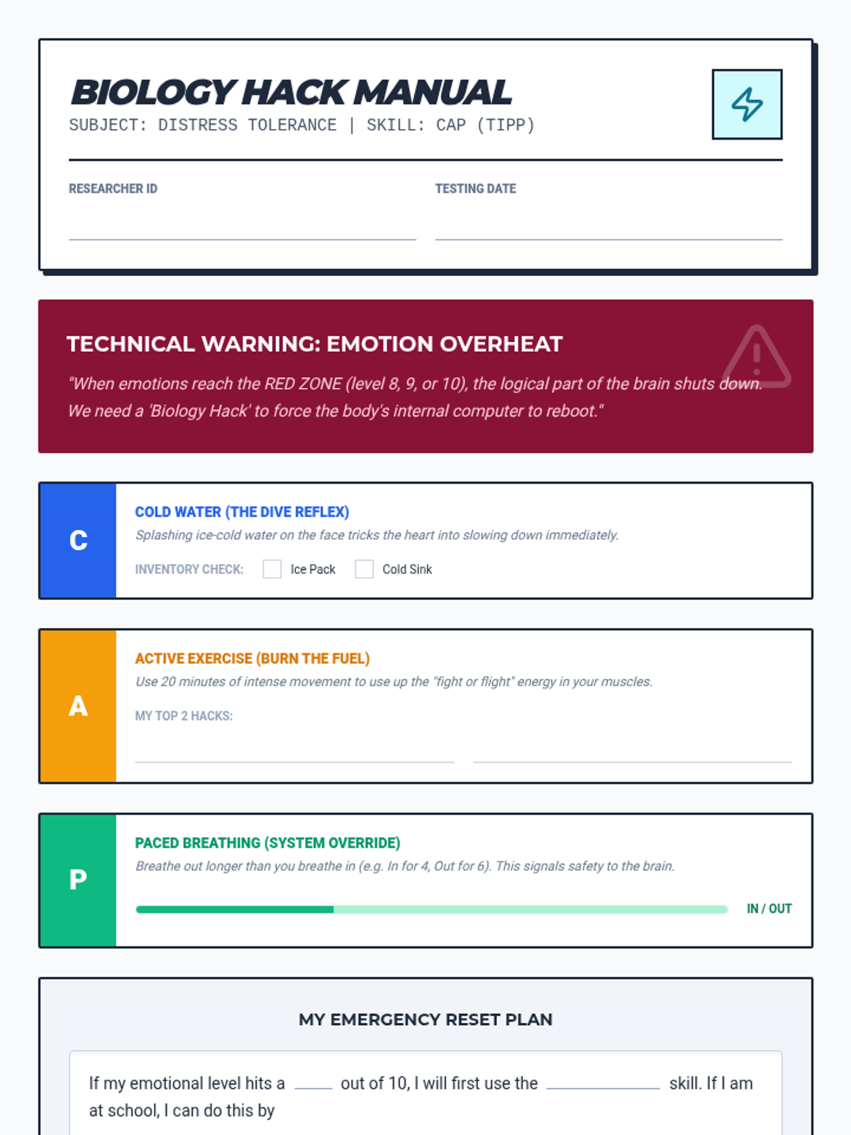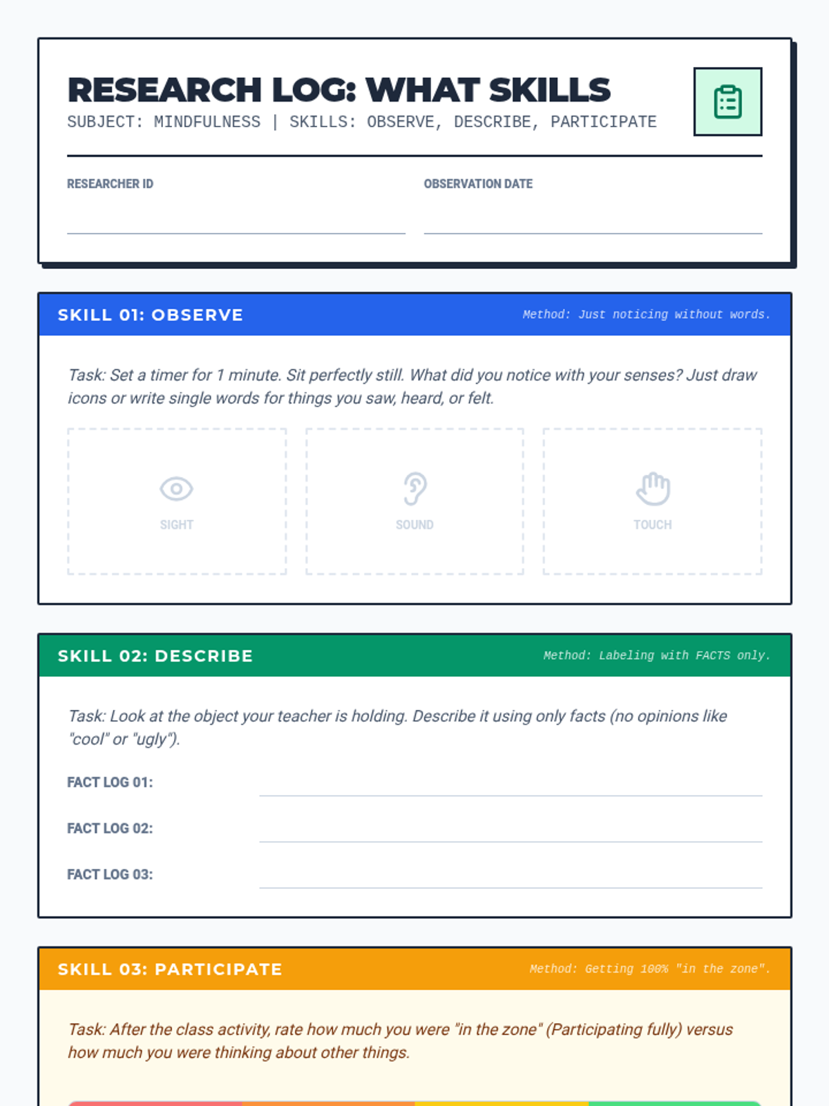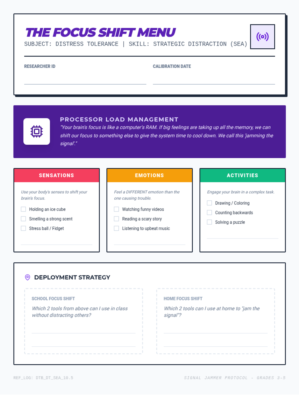 A comprehensive DBT skills training sequence for elementary schools, split into K-2 and 3-5 curricula. This program covers Mindfulness, Distress Tolerance, Emotion Regulation, and Interpersonal Effectiveness using age-appropriate activities and narratives.