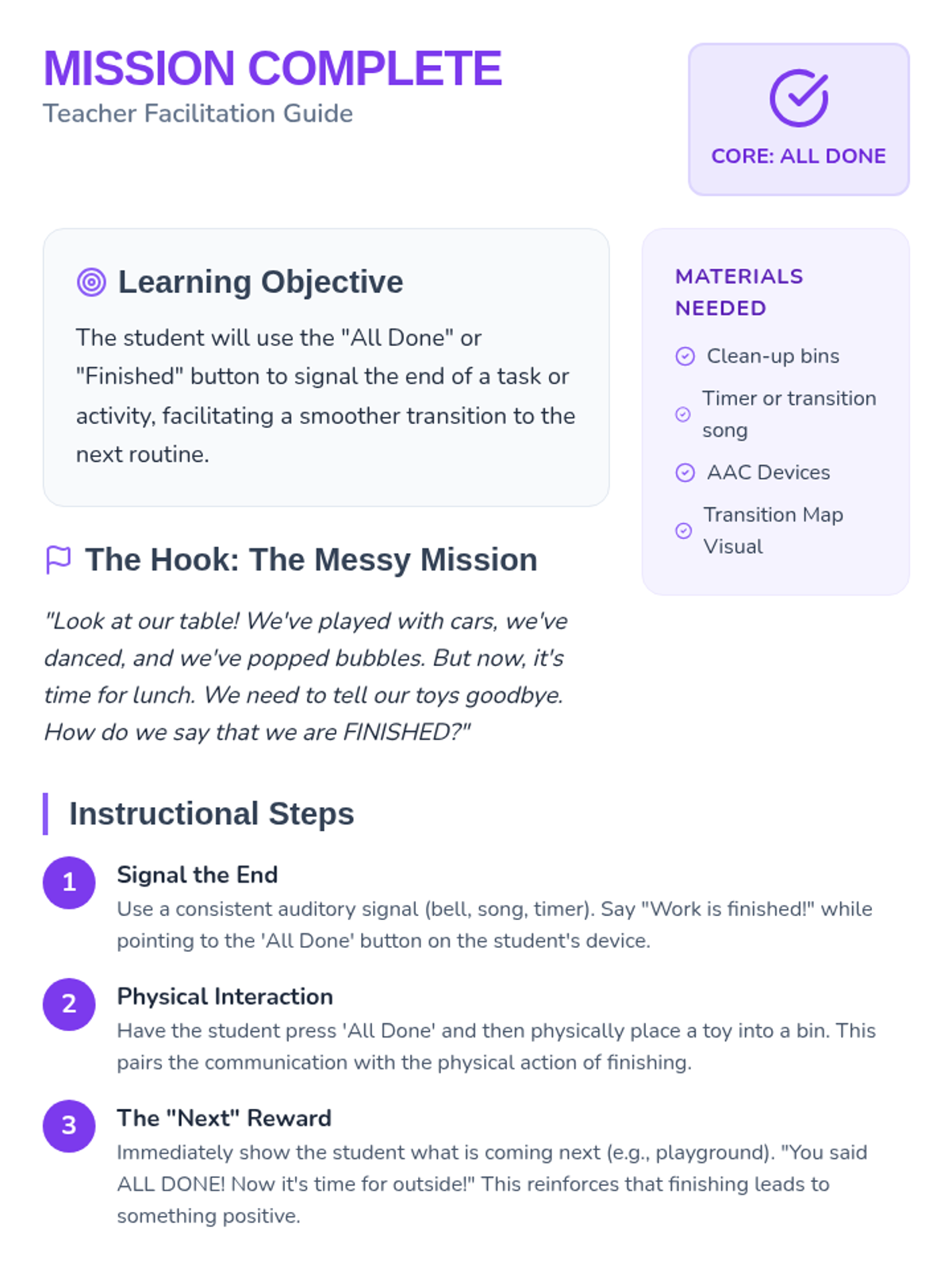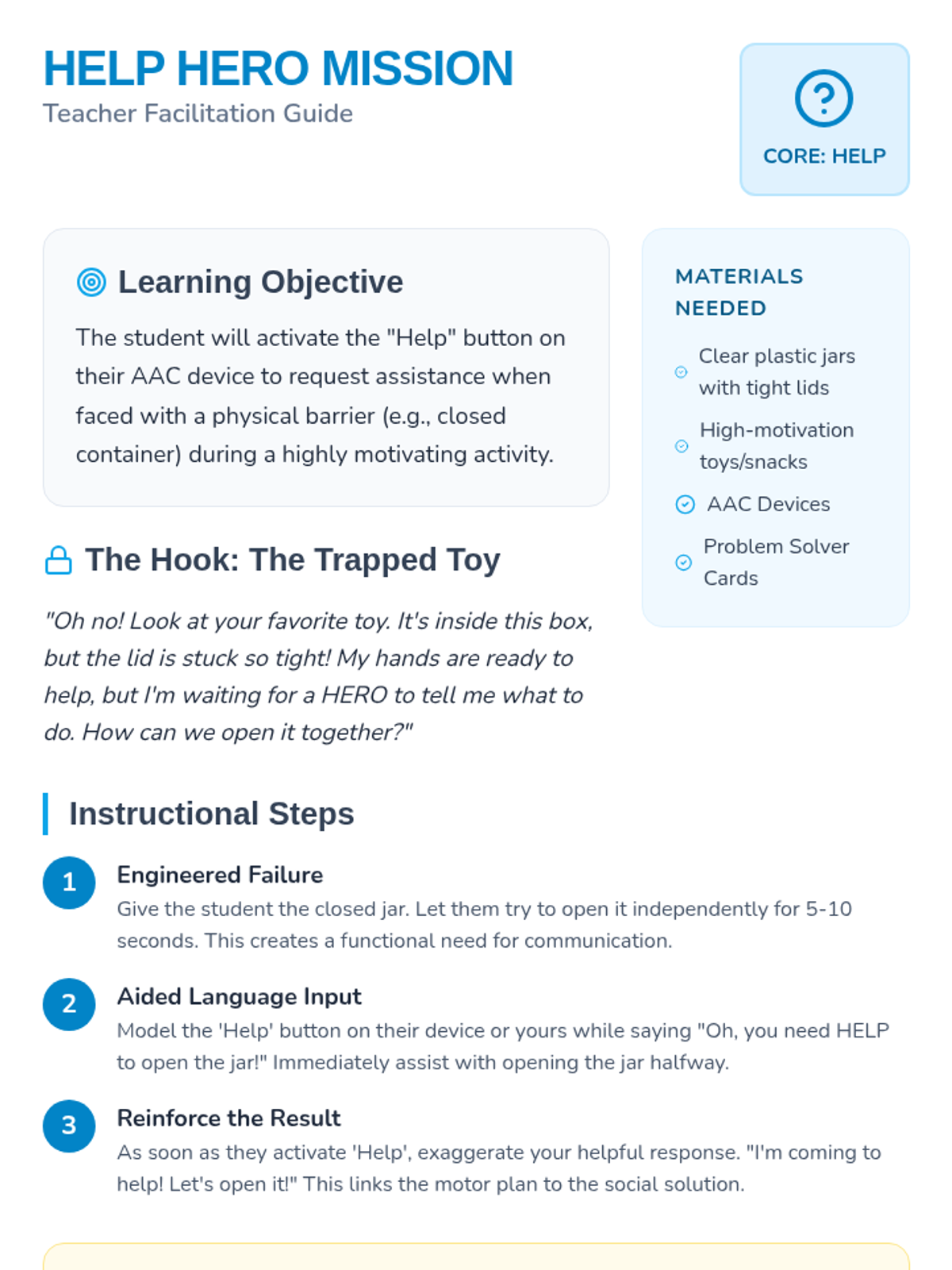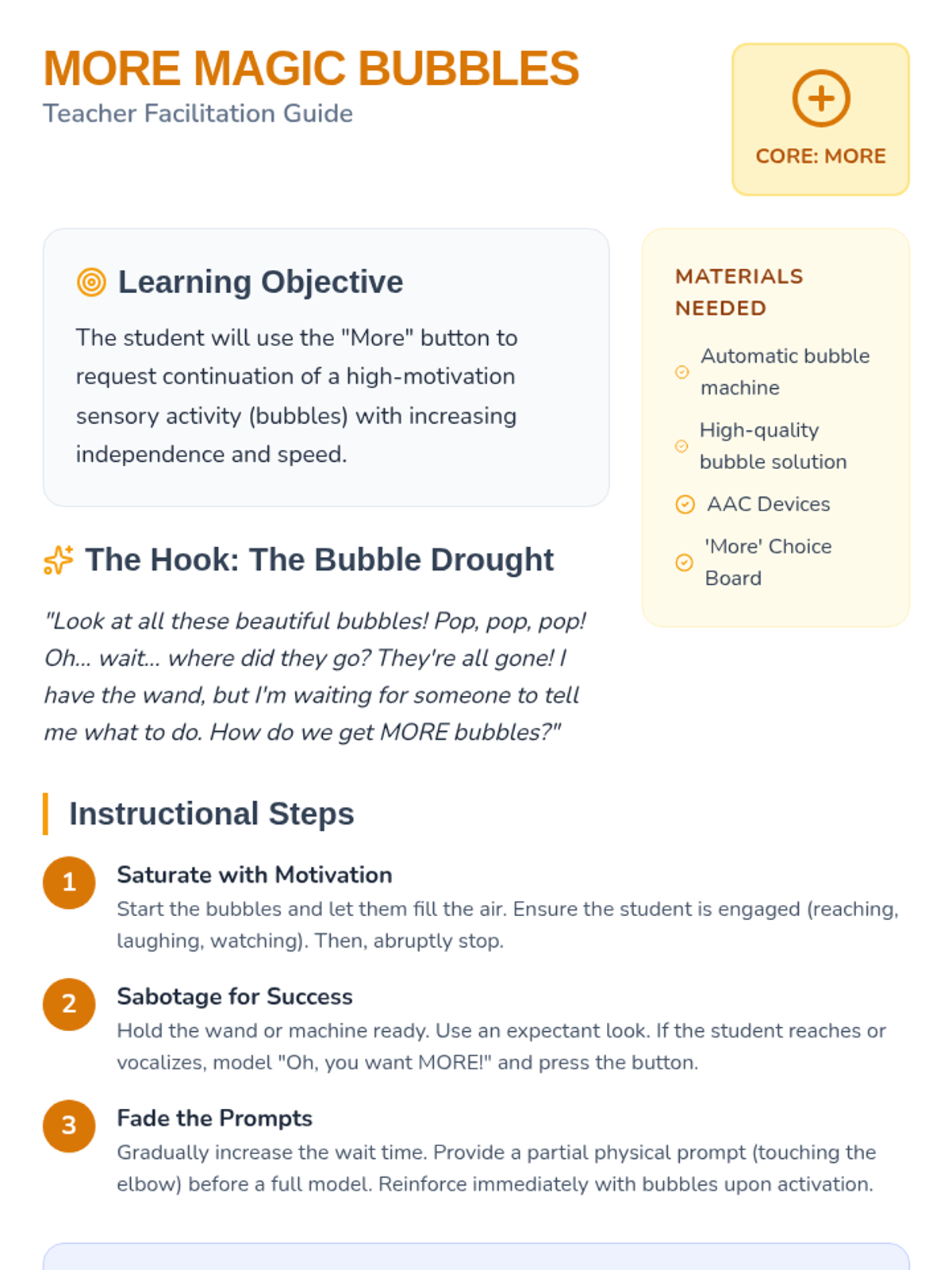 A foundational communication series designed for Pre-K students with severe speech delays, focusing on functional communication and self-advocacy through visual supports.
