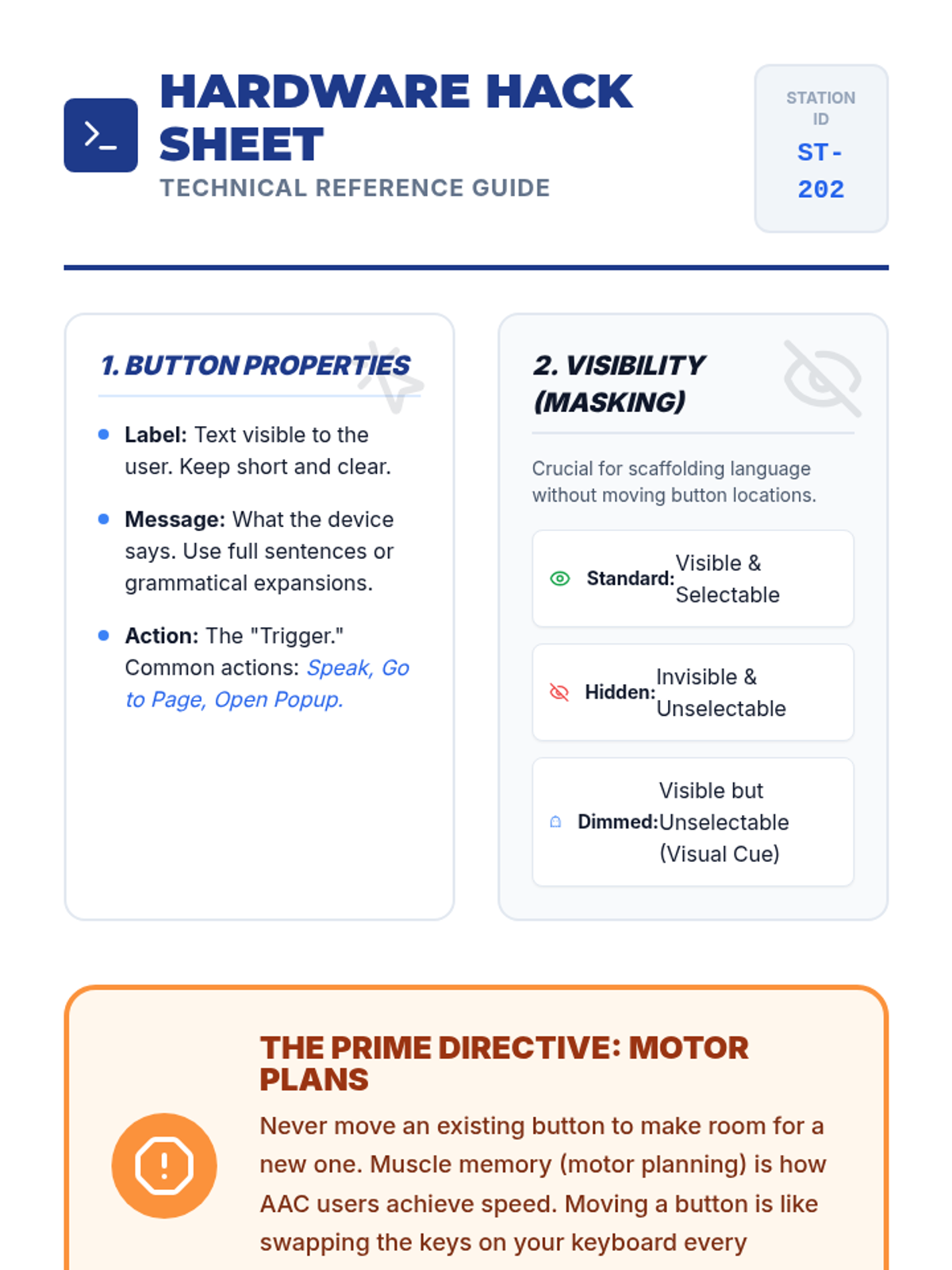 This sequence provides undergraduate students with hands-on skills in programming and customizing high-tech AAC devices. It balances technical proficiency with ethical considerations to ensure robust, user-centered communication systems.