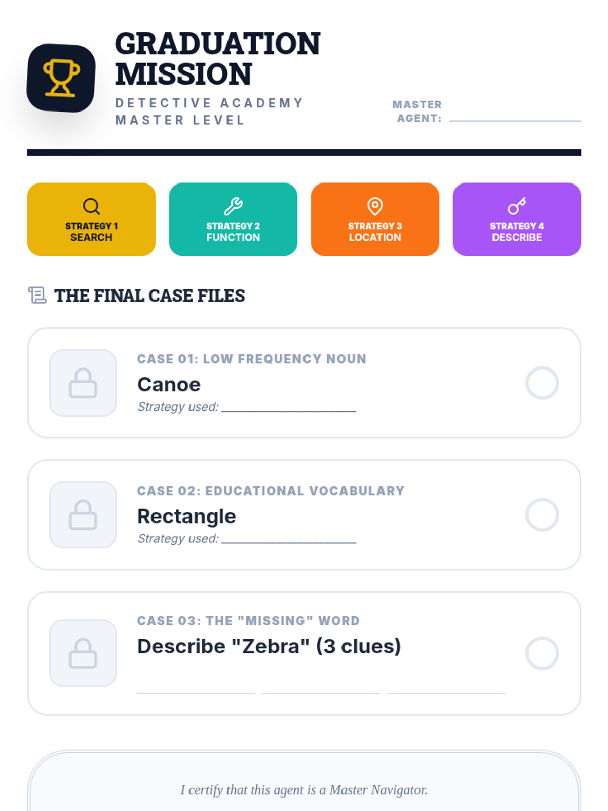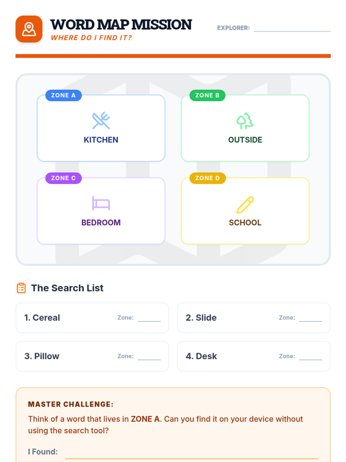 This sequence teaches 2nd-grade AAC users strategic ways to navigate complex fringe vocabulary. Students move from technical search tools to cognitive strategies like function and location association, empowering them to become independent communicators.