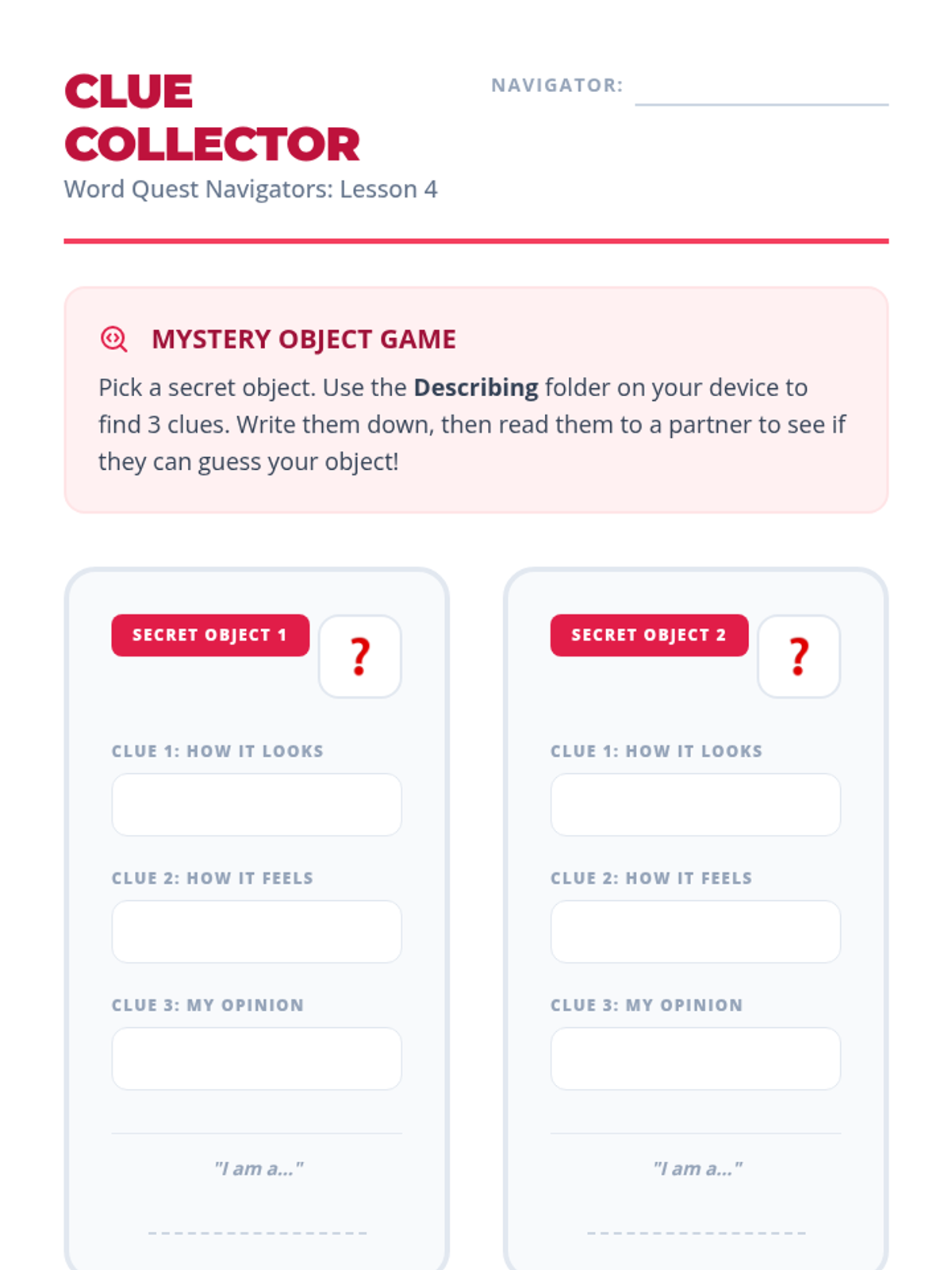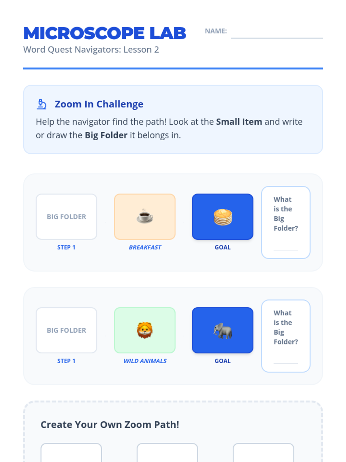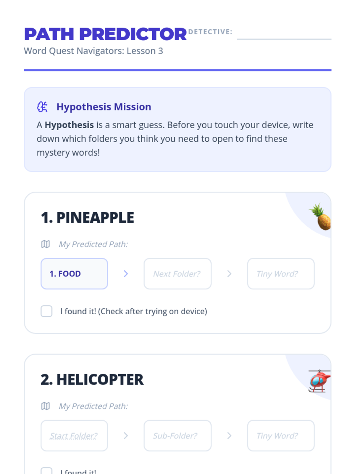 A 5-lesson unit for 3rd Grade students on AAC device navigation, focusing on semantic categorization, sub-folders, and predictive logic to find fringe vocabulary. Students progress from basic sorting to a complex 'Treasure Hunt' using their communication devices.