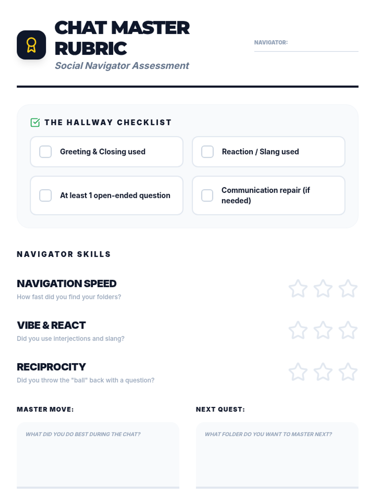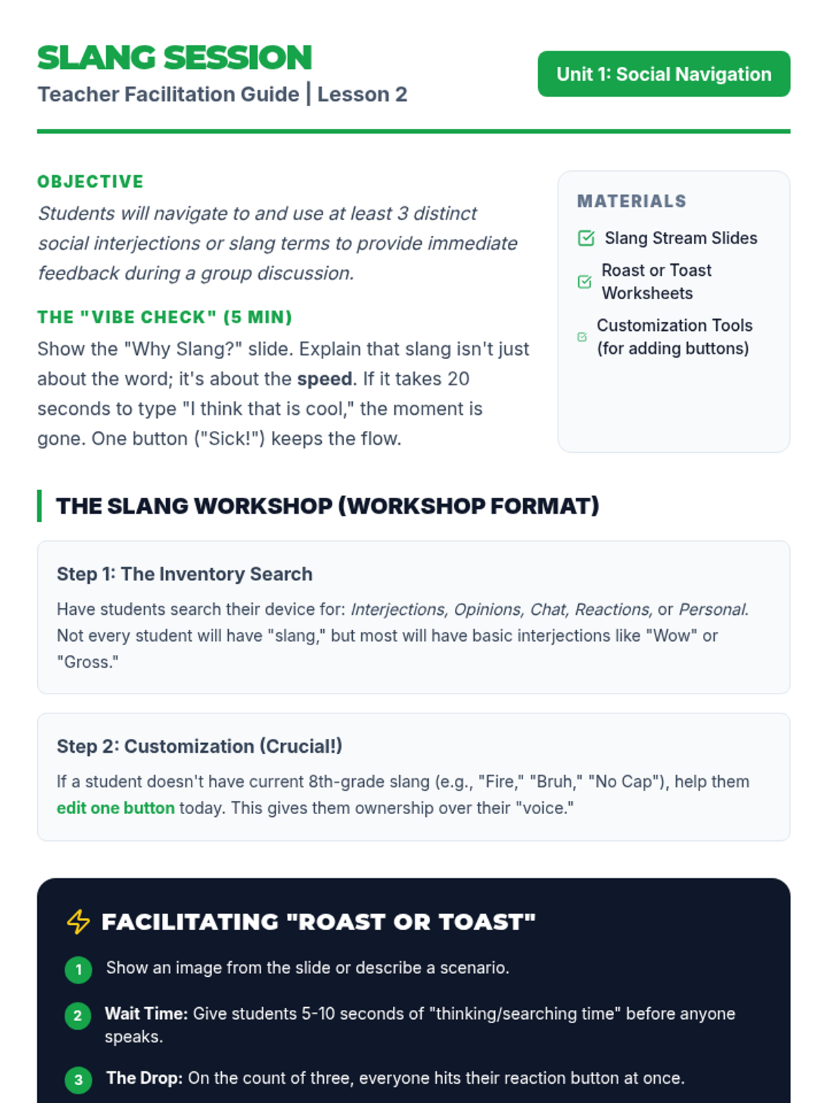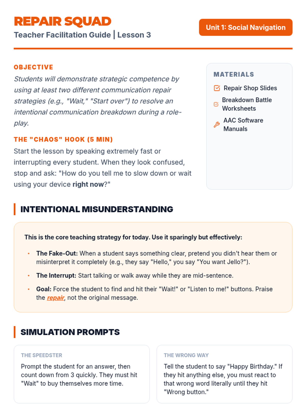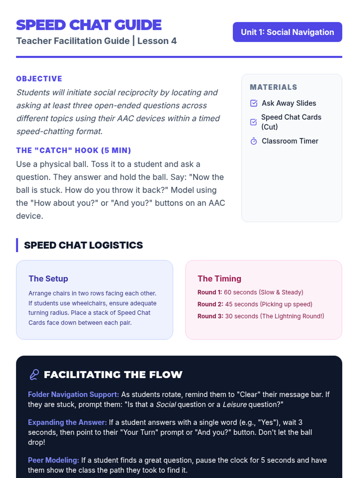 This sequence helps 8th-grade AAC users navigate their devices efficiently to participate in natural social interactions. Students will learn to find greetings, slang, communication repair tools, and peer-focused questions to sound more like their age-equivalent peers.