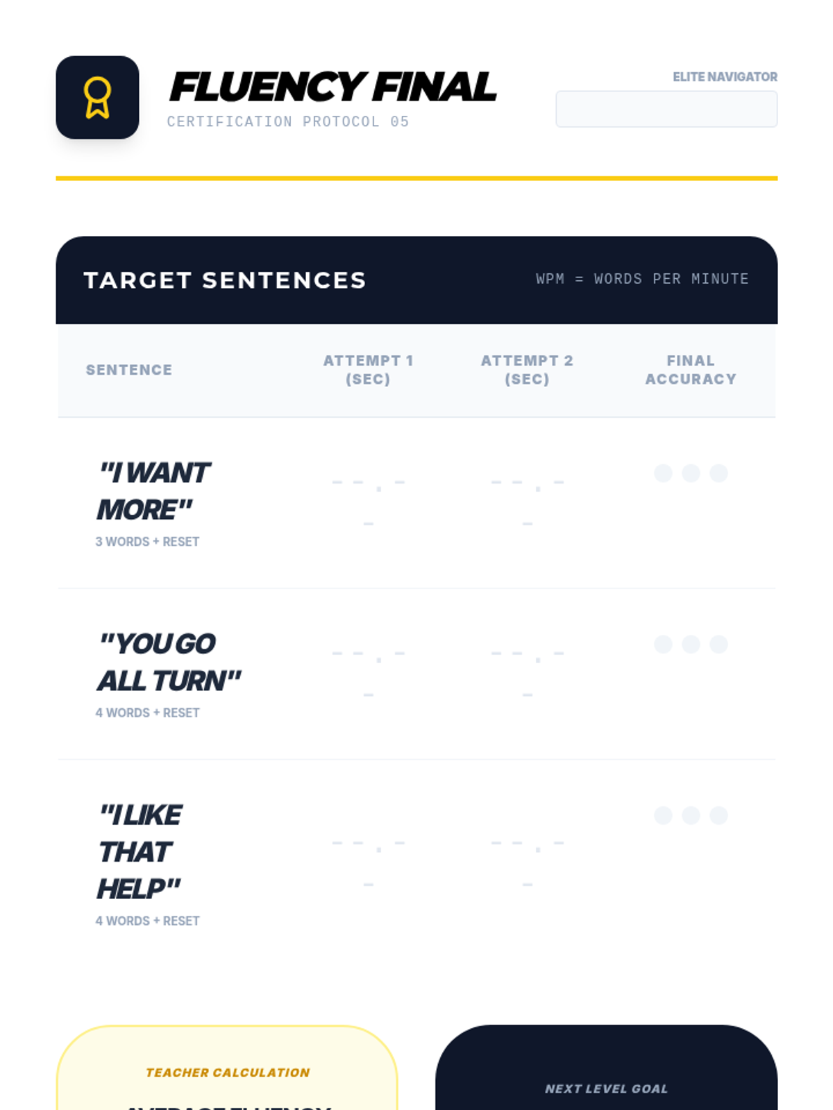 A sequence focused on building motor planning and navigation speed for 8th-grade AAC users. Students progress from single-word core location drills to rhythmic phrase patterns and "no-look" social navigation to achieve communication fluency.