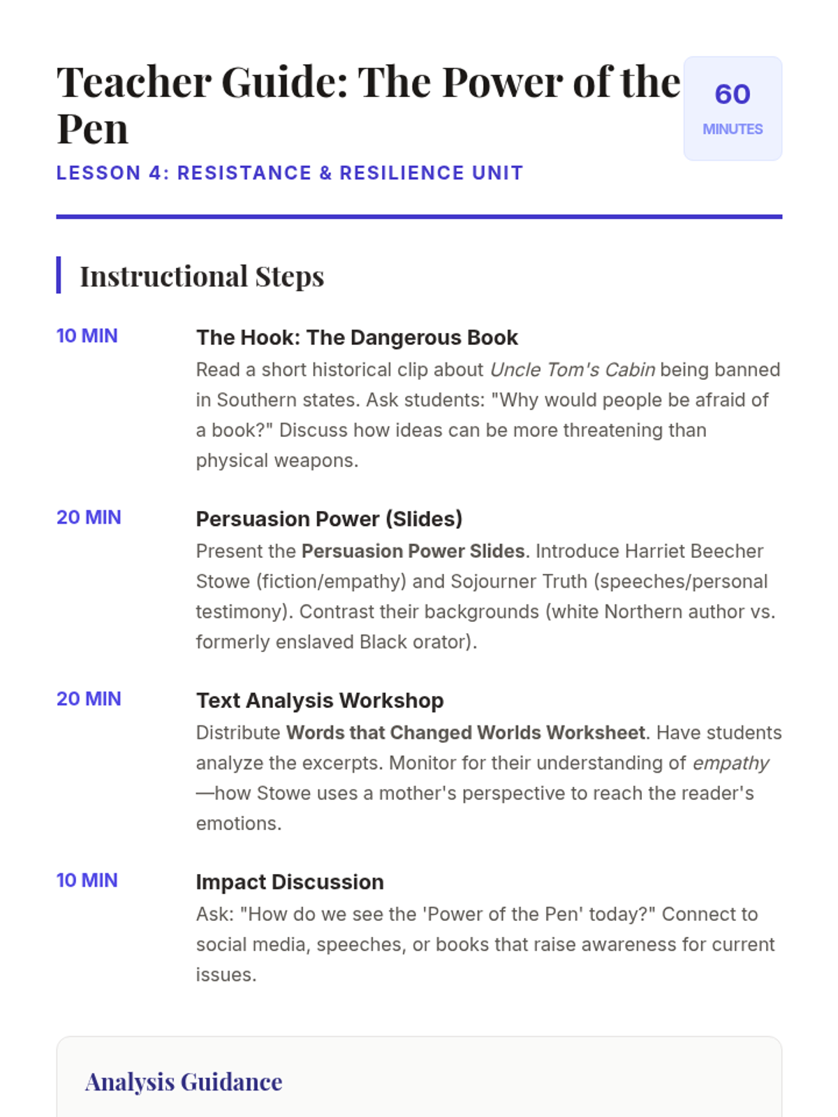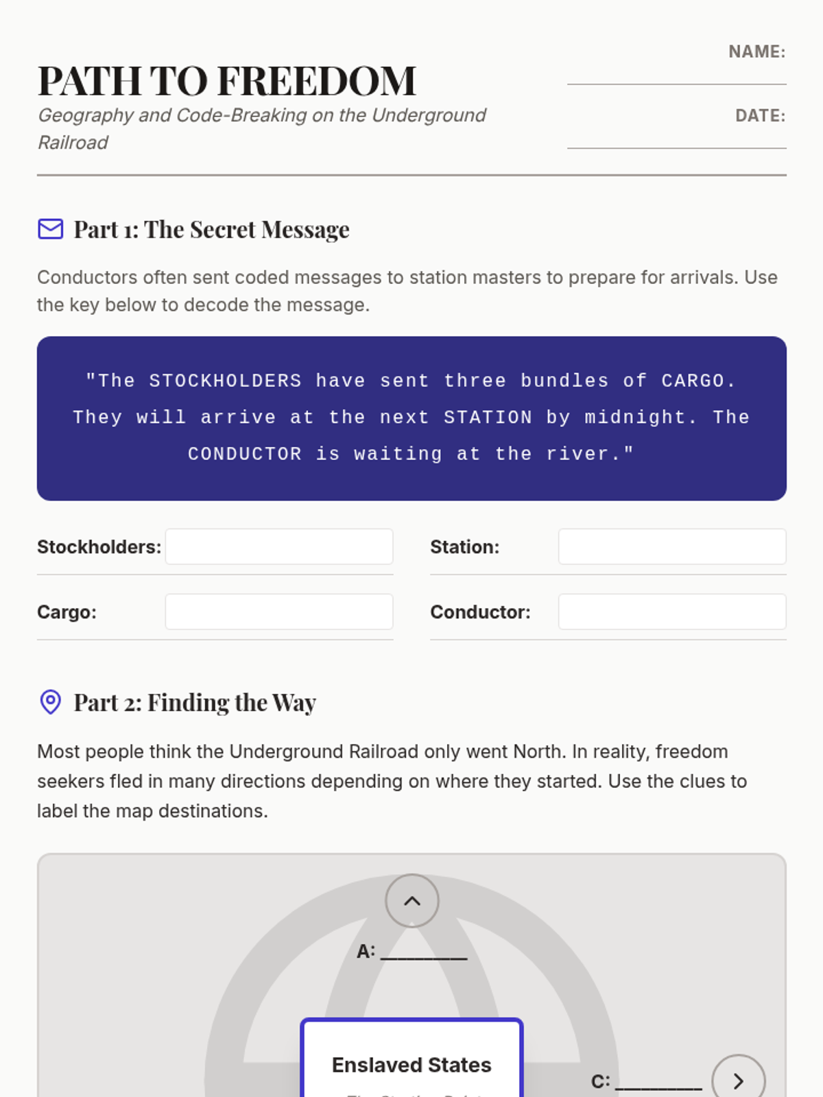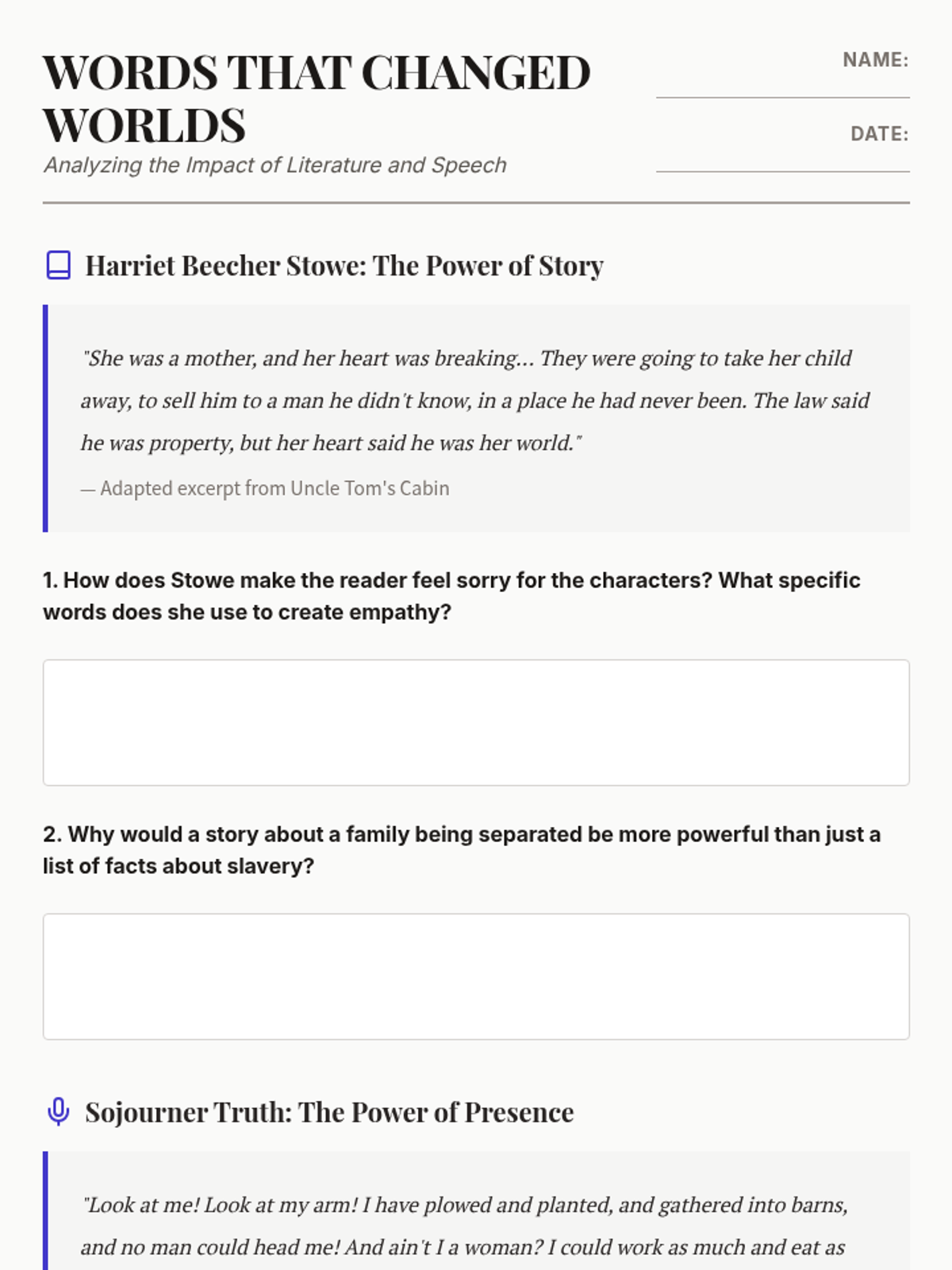 A 5th-grade history unit exploring the resistance against slavery through primary source narratives, the Underground Railroad, and the influential voices of the abolitionist movement. Students analyze different methods of resistance and the power of words in the fight for justice.