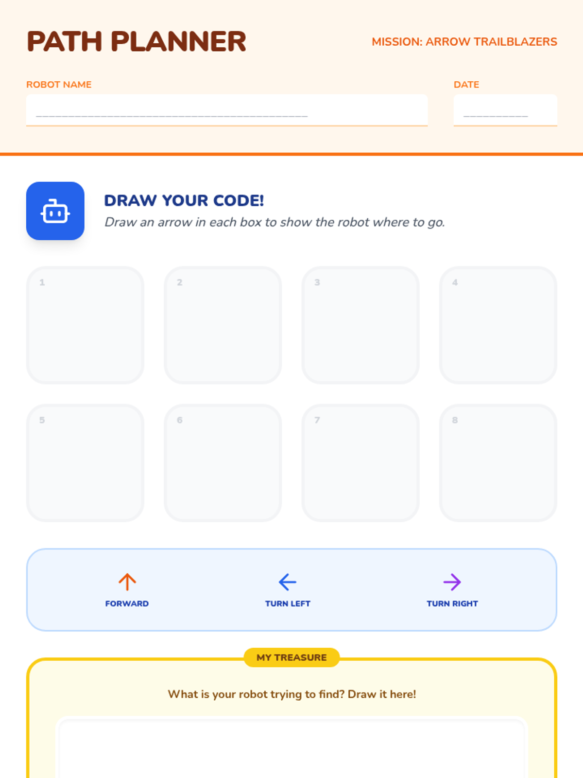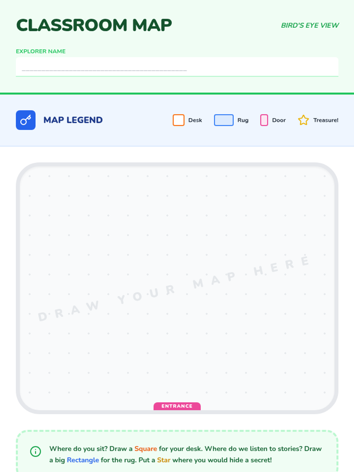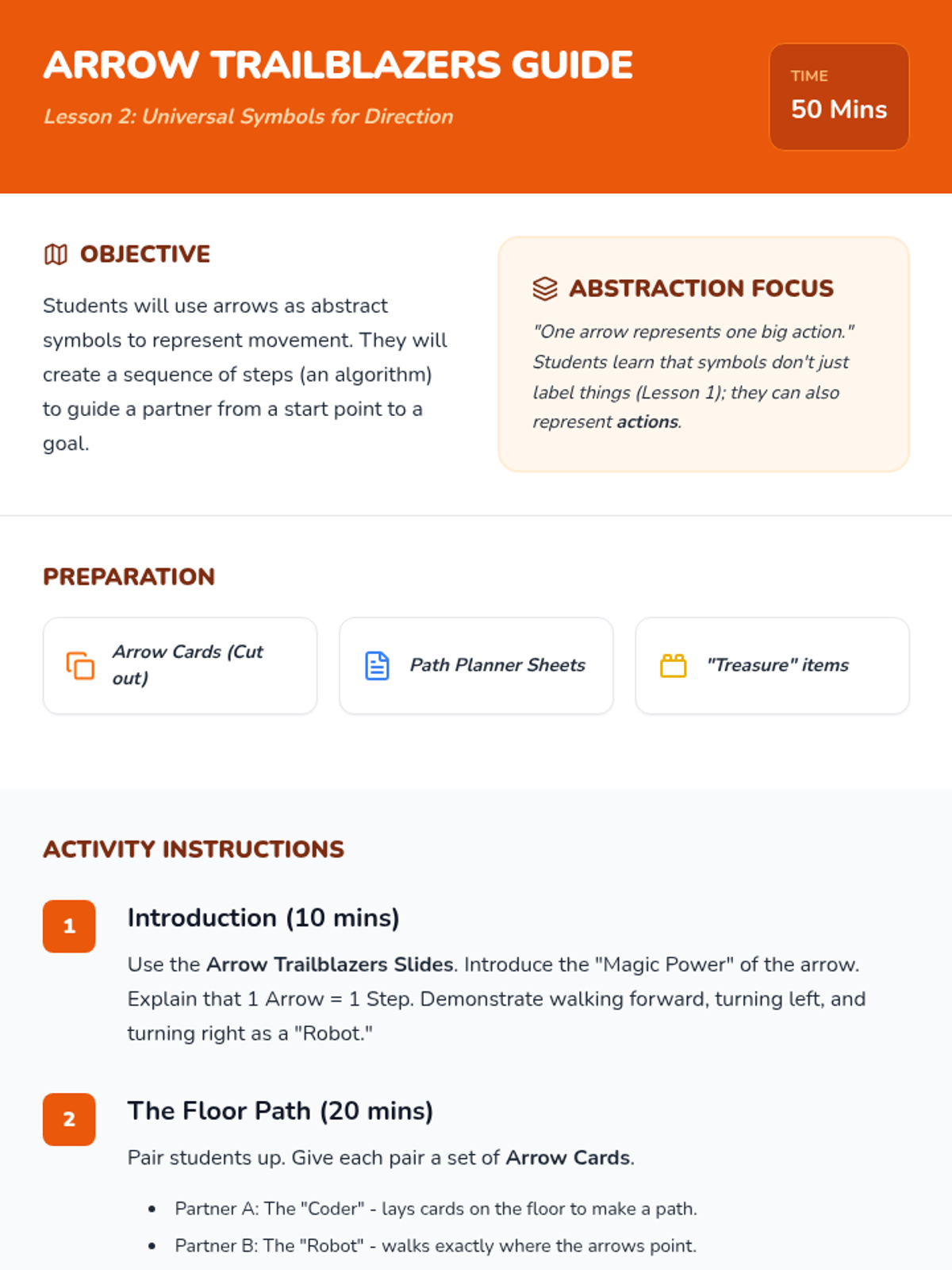 A Kindergarten sequence focused on abstraction, teaching students to represent real-world objects and actions using symbols. Students progress from recognizing environmental signs to creating their own symbolic languages and navigating maps.