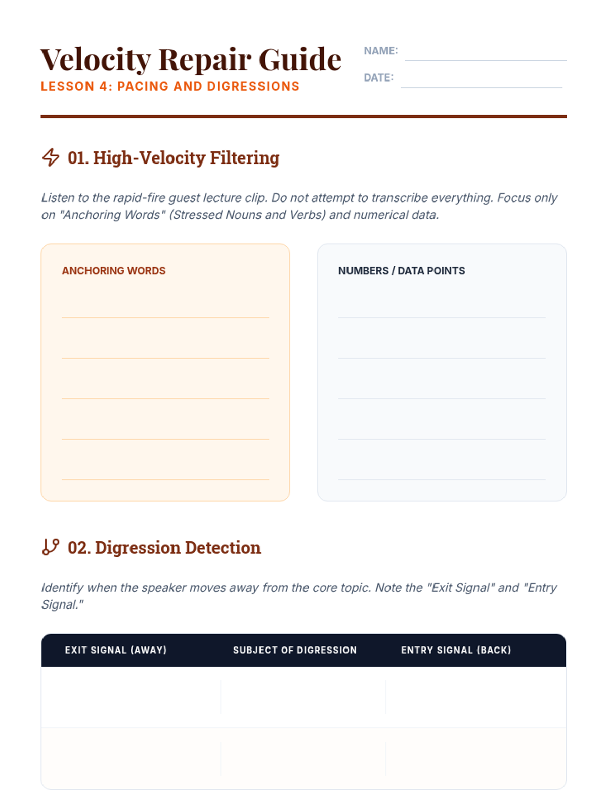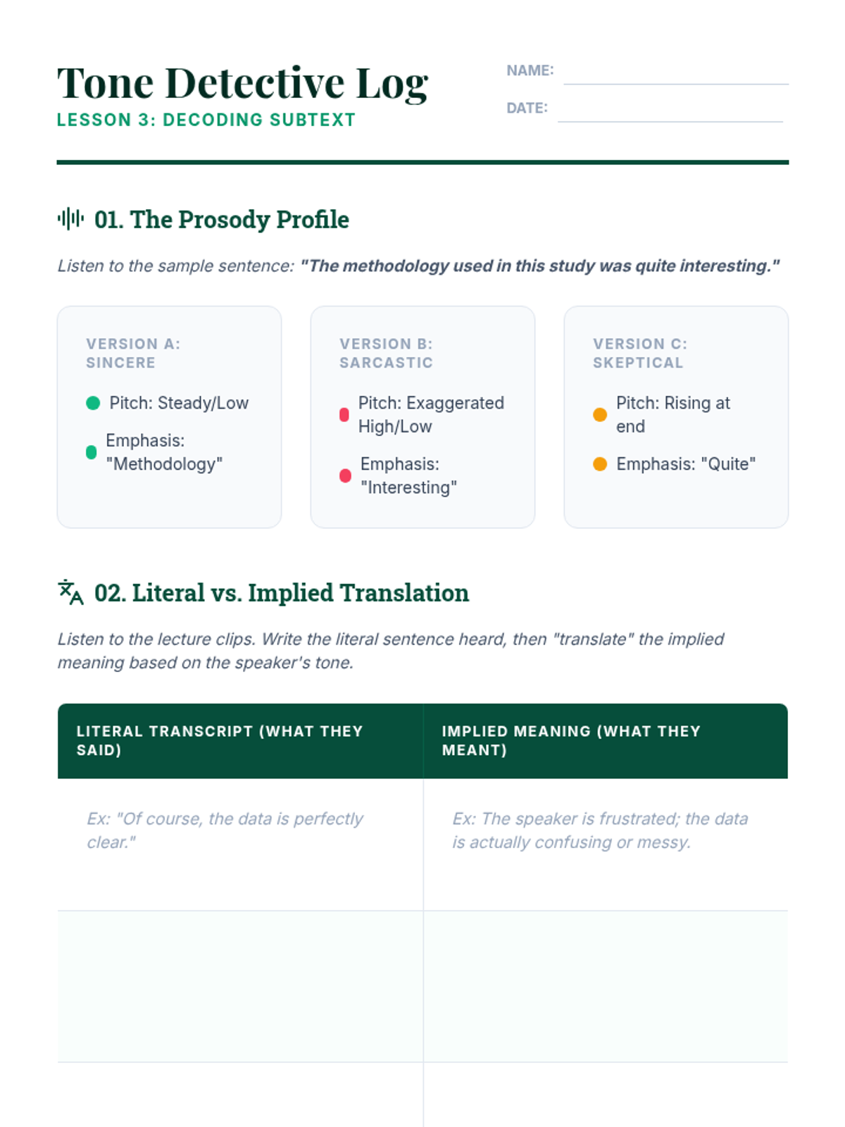 This sequence immerses undergraduate students in the rigorous environment of university-level academic discourse, focusing on the deconstruction of complex lectures and presentations. Students move from identifying structural signposts to evaluating implicit bias, speaker intent, and rhetorical strategies in real-time.